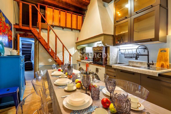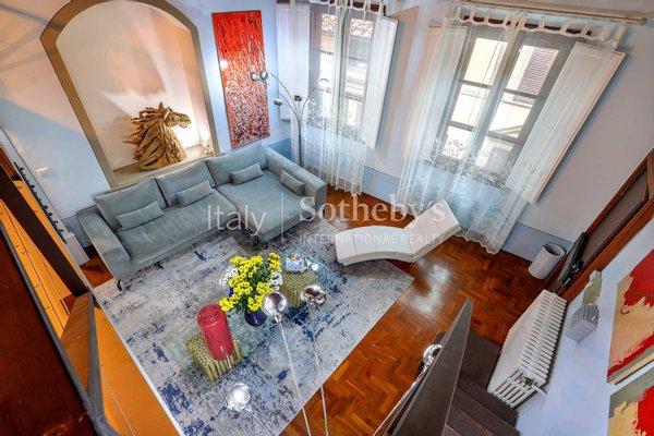Located in the beating heart of Florence, in a historic building from the 1500s designed by the illustrious Michelangelo Buonarroti, the apartment is just a four-minute walk from the famous Piazza Duomo, whose dome is partially visible from the large windows of the living room.
