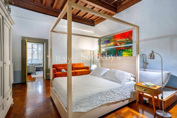 Located in the beating heart of Florence, in a historic building from the 1500s designed by the illustrious Michelangelo Buonarroti, the apartment is