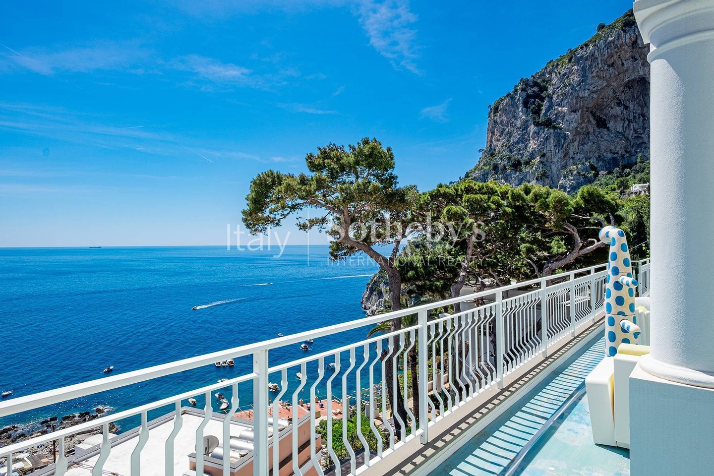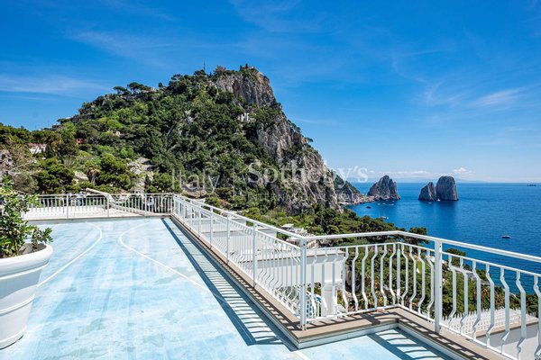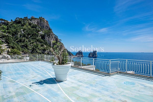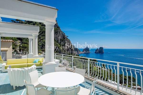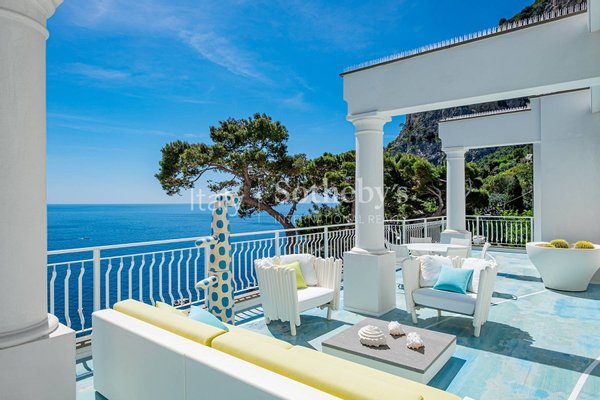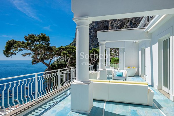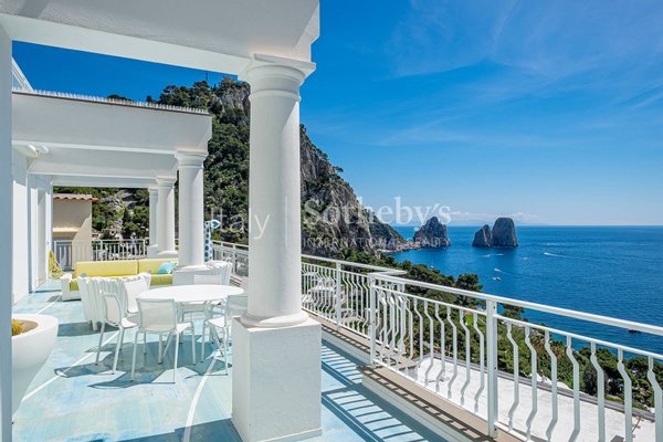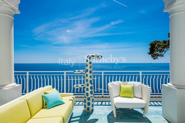 Dieses außergewöhnliche Penthouse, das kürzlich mit hochwertigen Materialien renoviert wurde, befindet sich auf der Via Marina Piccola, nur wenige Schritte von den berühmtesten Strandclubs der Blauen Insel entfernt. Alle Zimmer haben direkten Zugang zur herrlichen ebenen Terrasse, die einen außergewöhnlichen Blick auf die Faraglioni bietet. Das Penthouse befindet sich in einem Gebäude mit nur drei Etagen, das über einen Aufzug erreichbar ist, und besteht aus einem großen Wohnzimmer, einer geräumigen, ausgestatteten Küche, einem Esszimmer und zwei Schlafzimmern mit Meerblick und Bad, davon das Hauptzimmer mit eigenem Bad Badezimmer. Die spektakuläre Renovierung mit leuchtenden Farben, die Reliefharze und die Hausautomation der neuesten Generation machen diese Immobilie zu einem einzigartigen Beispiel im Immobilienpanorama von Capri. Das Anwesen umfasst eine Dachterrasse und eine Garage für zwei Autos.