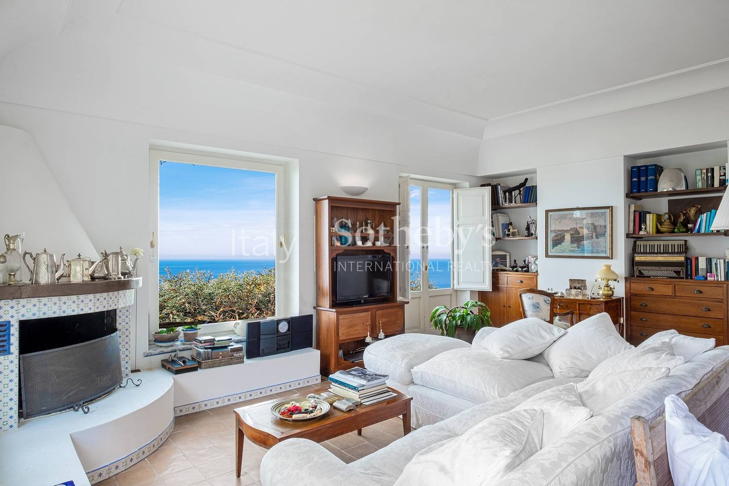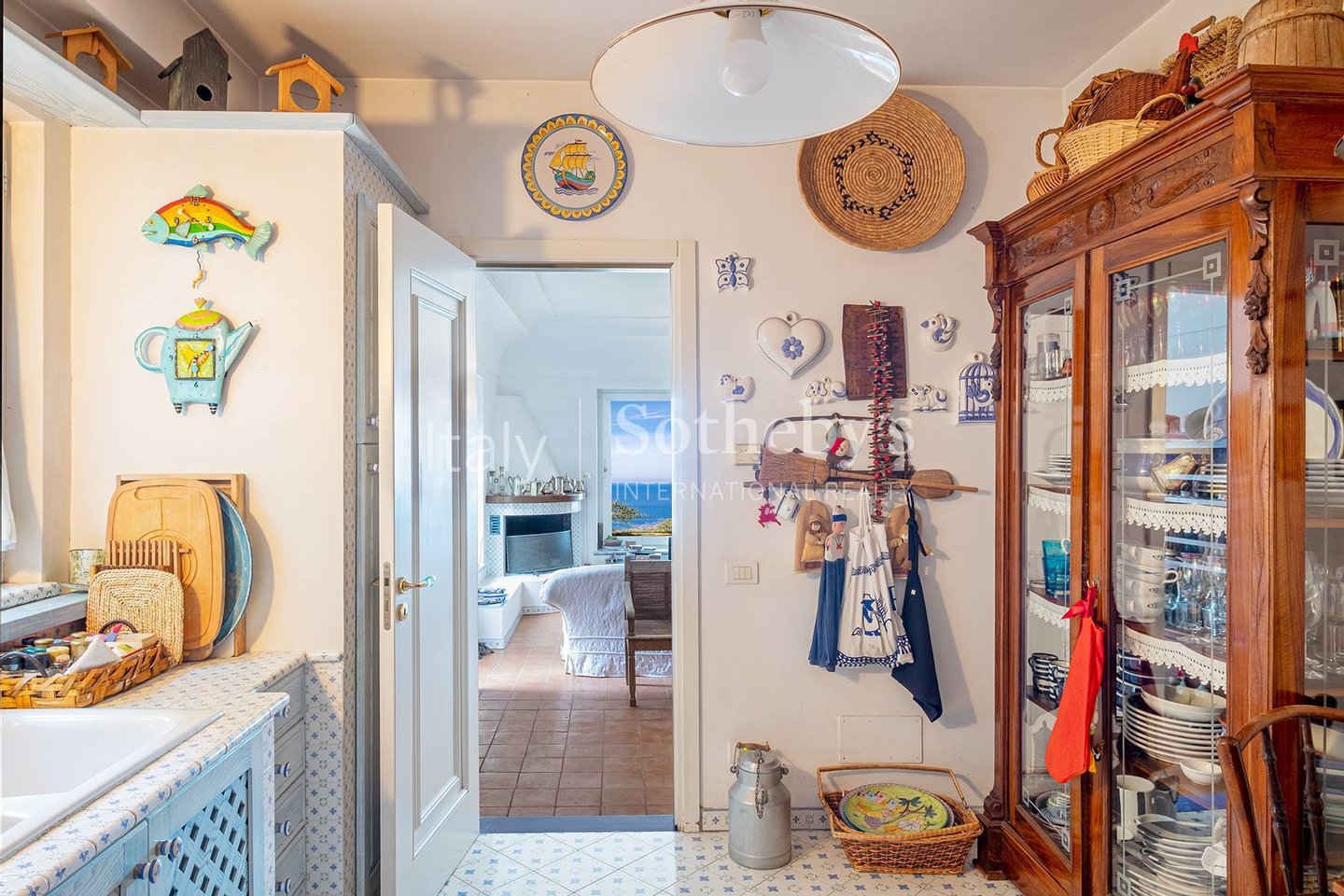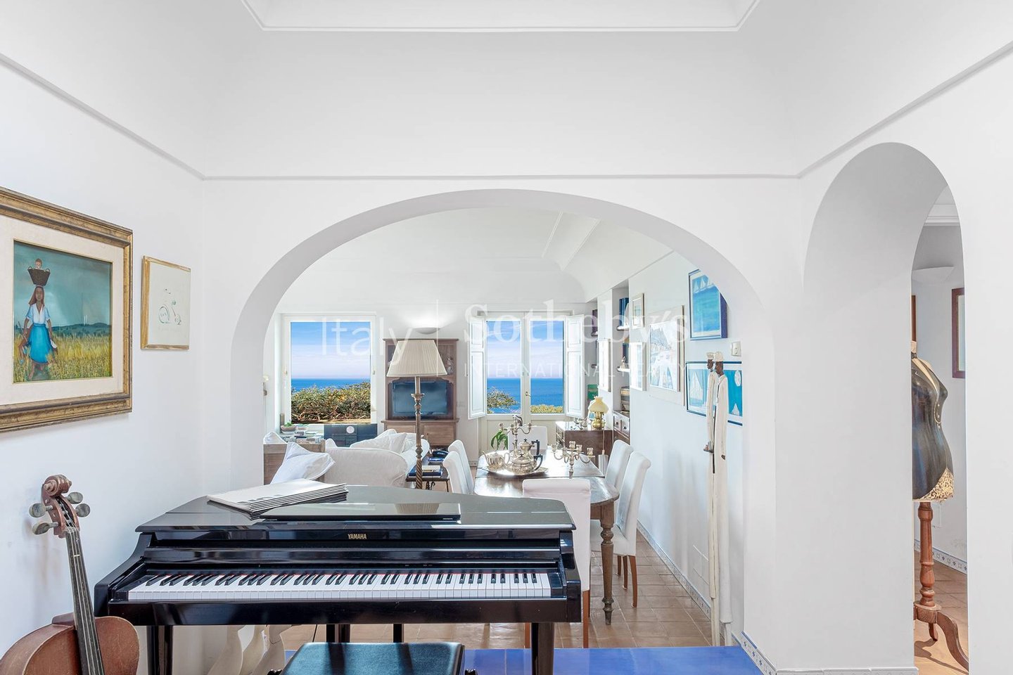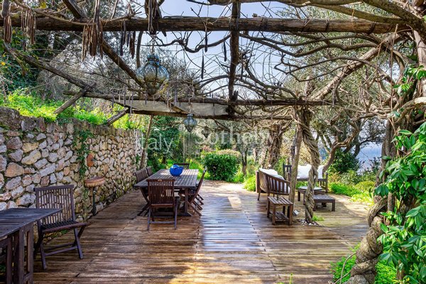 Diese herrliche charmante Villa, eingebettet im grünen Herzen von Gradola, präsentiert eine Architektur, die traditionell auf Capri zu finden ist, mit raffinierten Ausführungen und großen Fenstern. Au