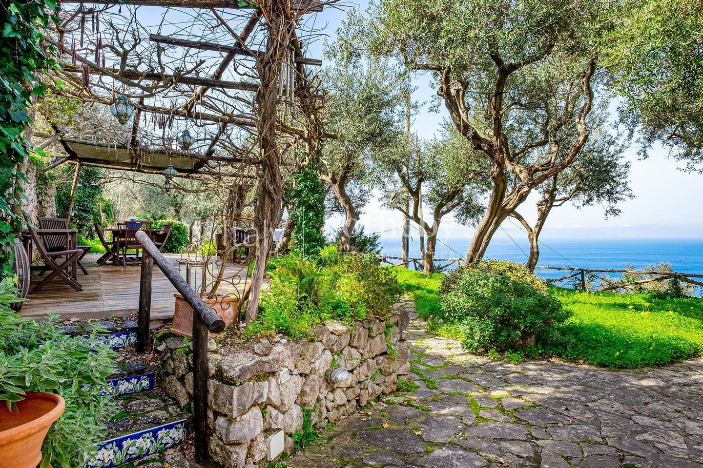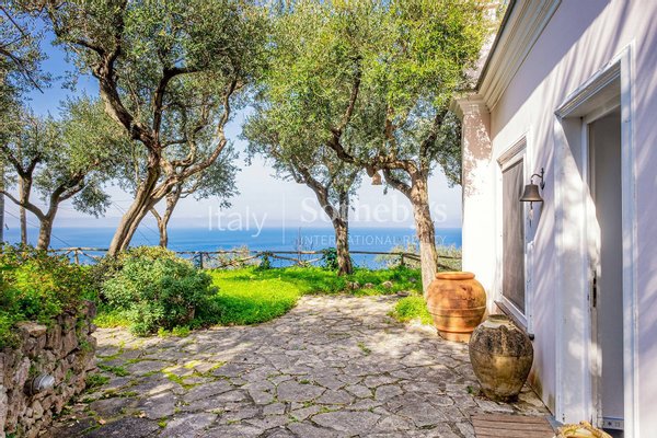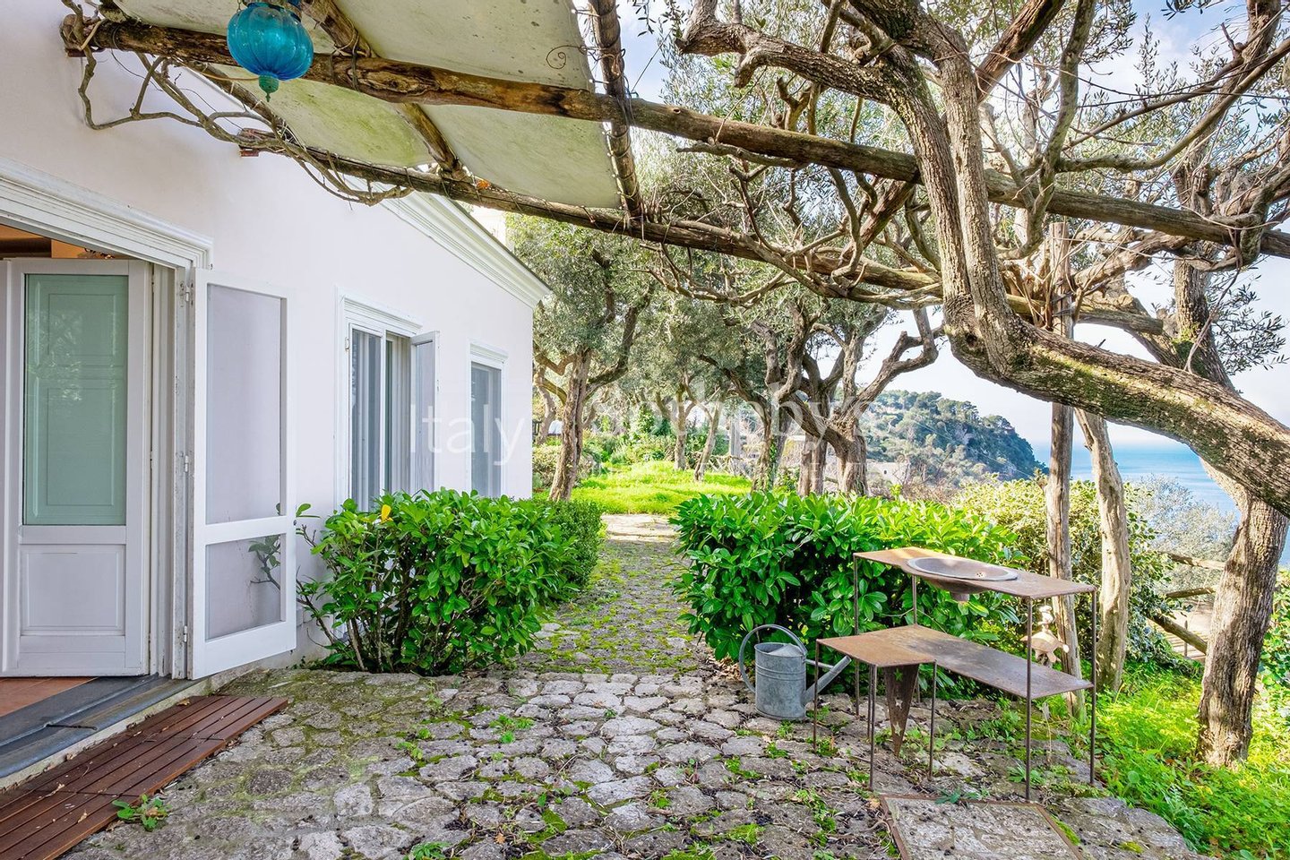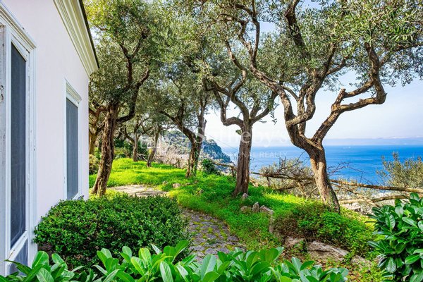 Diese herrliche charmante Villa, eingebettet im grünen Herzen von Gradola, präsentiert eine Architektur, die traditionell auf Capri zu finden ist, mit raffinierten Ausführungen und großen Fenstern. Auf einer Ebene angelegt, öffnet sich die Villa zu einem hellen Eingang, der zu einem großzügigen Wohnbereich führt, der durch einen Steinkamin geprägt ist, aber vor allem durch eine atemberaubende Aussicht auf das tiefblaue, kristallklare Meer der Grotta Azzurra. Vom Wohnzimmer aus gelangt man in eine voll ausgestattete Küche. Der Schlafbereich besteht aus zwei großen Schlafzimmern und drei Bädern. Es besteht die Möglichkeit, ein drittes Schlafzimmer zu schaffen. Eine charmante Steinstraße schlängelt sich durch den Garten und folgt dem natürlichen Muster des Außenbereichs. Olivenbäume, Mandelbäume und Kirschbäume füllen diesen entspannenden Raum mit einzigartigen Lichtern, Schatten und Farben. Die Unterkunft ist mit dem Auto erreichbar, und der Prozess für den Bau des Pools ist bereits in Gang.