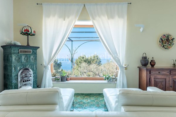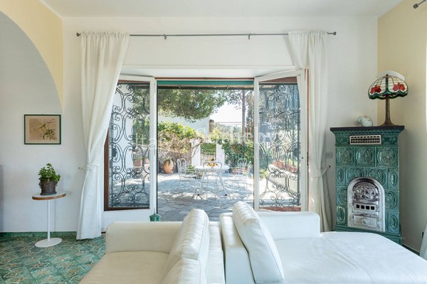 Auf der Panorama-Straße Tuoro in Anacapri befindet sich diese wunderschöne Residenz. Sie ist mit dem Auto direkt zugänglich und vom mediterranen Garten umgeben. Die Villa, mit großen Fenstern vom Garten bis zum Meer, öffnet sich auf einen schönen