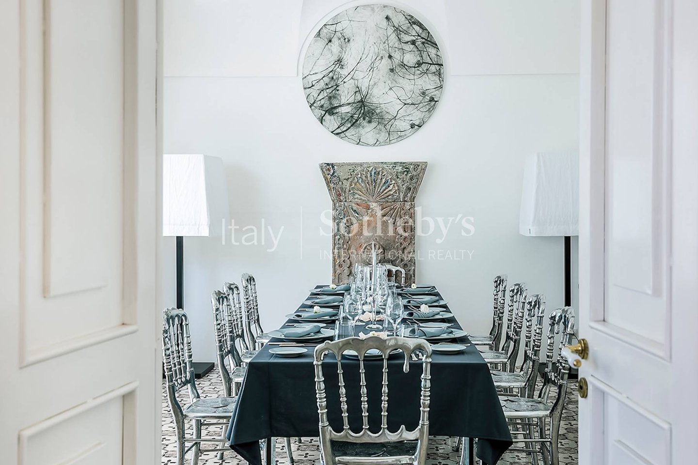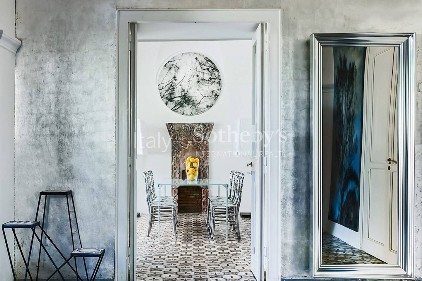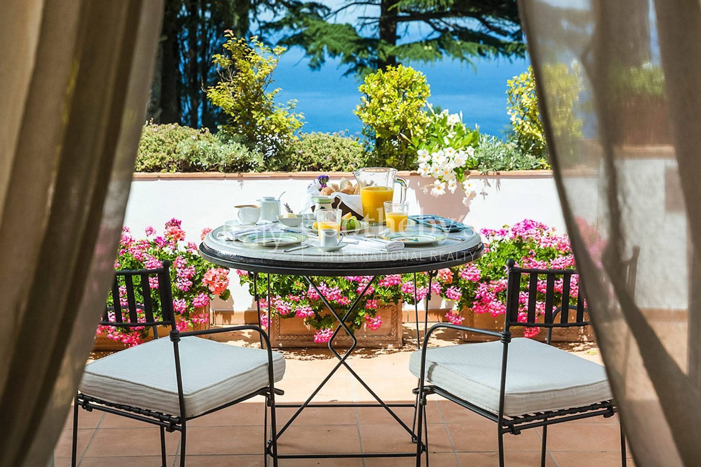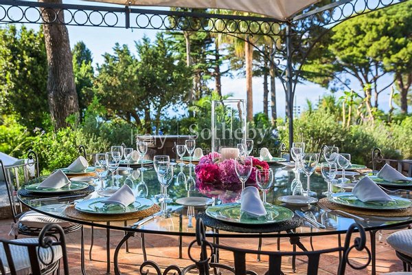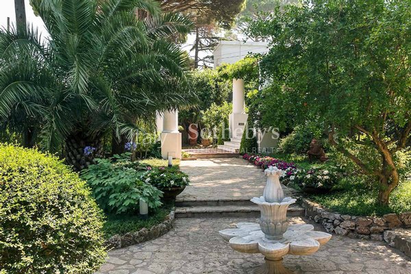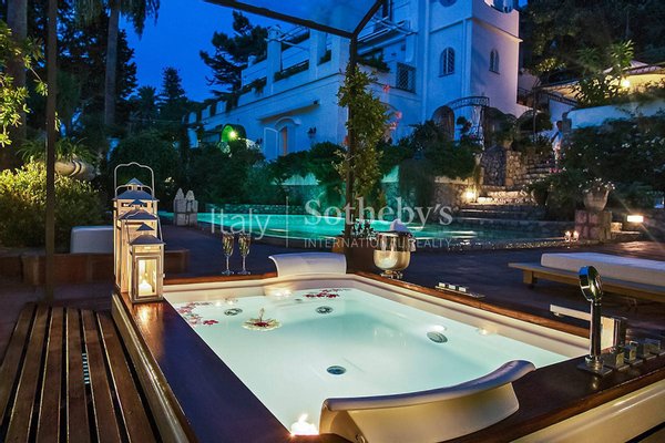 In der Villa Le Scale können Sie die ganze Geschichte von Anacapri atmen: Sie ist außergewöhnlich schön und eine der wenigen Residenzen aus dem 19. Jahrhundert auf Capri. Einst Sommerresidenz von Baron Monti delle Corte, der Familie, die die Vereinigung zweier königlicher Familien repräsentierte, wurde die Villa vollständig renoviert, wobei ihre historische und architektonische Vergangenheit erhalten blieb. Das Ergebnis ist ein Herrenhaus, das zu einem der luxuriösesten Rückzugsorte auf Capri geworden ist. Jahrhundertealte Bäume, Blumenbeete und ein entzückender, von Blumen umgebener Pool bilden die Kulisse für diese bezaubernde Villa. Eine elegante Treppe aus weißem Carrara-Marmor mit 45 Stufen führt zum Haupteingang des Hauses. Die Innenräume haben einen großen Wohnbereich, der durch angenehme Höhenunterschiede gebildet wird, wo die ursprünglichen Böden mit geometrischen Motiven hervorstechen. Die vorherrschenden Gewölbedecken und die feinste Einrichtung betonen die wunderbare Landschaft. Auf der gleichen Etage befindet sich eine gut ausgestattete Küche mit Vorratskammern und draußen eine bezaubernde Veranda, die vollständig von transparenten Glasscheiben umgeben ist, die den Blick auf das Meer nicht behindern. Die Villa besteht aus 5 wunderschönen Schlafzimmern, wunderschön im romantischen Stil eingerichtet, mit einer exklusiven Terrasse und 5 eleganten Badezimmern, die sich im Obergeschoss befinden, sowie 2 Nebengebäuden mit 2 weiteren Schlafzimmern mit Badezimmer im Garten. Ausgestattet mit Technikräumen, Lagern und Keller im Untergeschoss. Die Lage der Villa ermöglicht es Ihnen, das Zentrum von Anacapri mit allen Dienstleistungen, Taxi- und Busstationen in alle Richtungen, das Museum der Villa S. Michele und den Sessellift zum Monte Solaro in nur 3 Minuten zu Fuß zu erreichen. Der Hubschrauberlandeplatz ist ebenfalls nur 1,5 km entfernt.