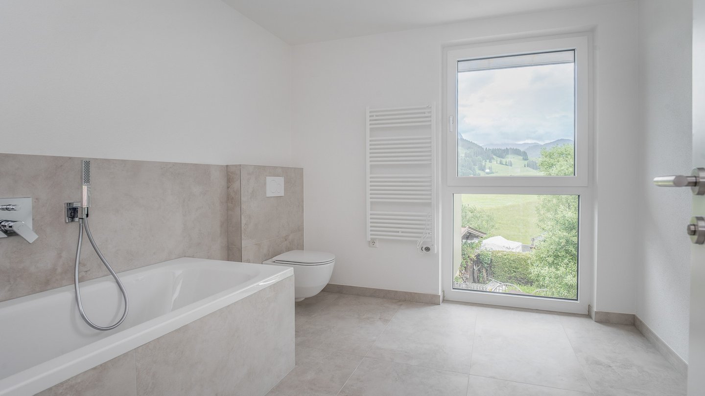 Ein weiteres Highlight der Wohnung ist der Master-Schlafbereich mit insgesamt 35 m², dieser besteht aus einer geräumigen Ankleide, einem Badezimmer mit Badewanne und großer Dusche sowie dem Schlafraum mit einem sensationellen Blick auf den Wilden Kaiser.