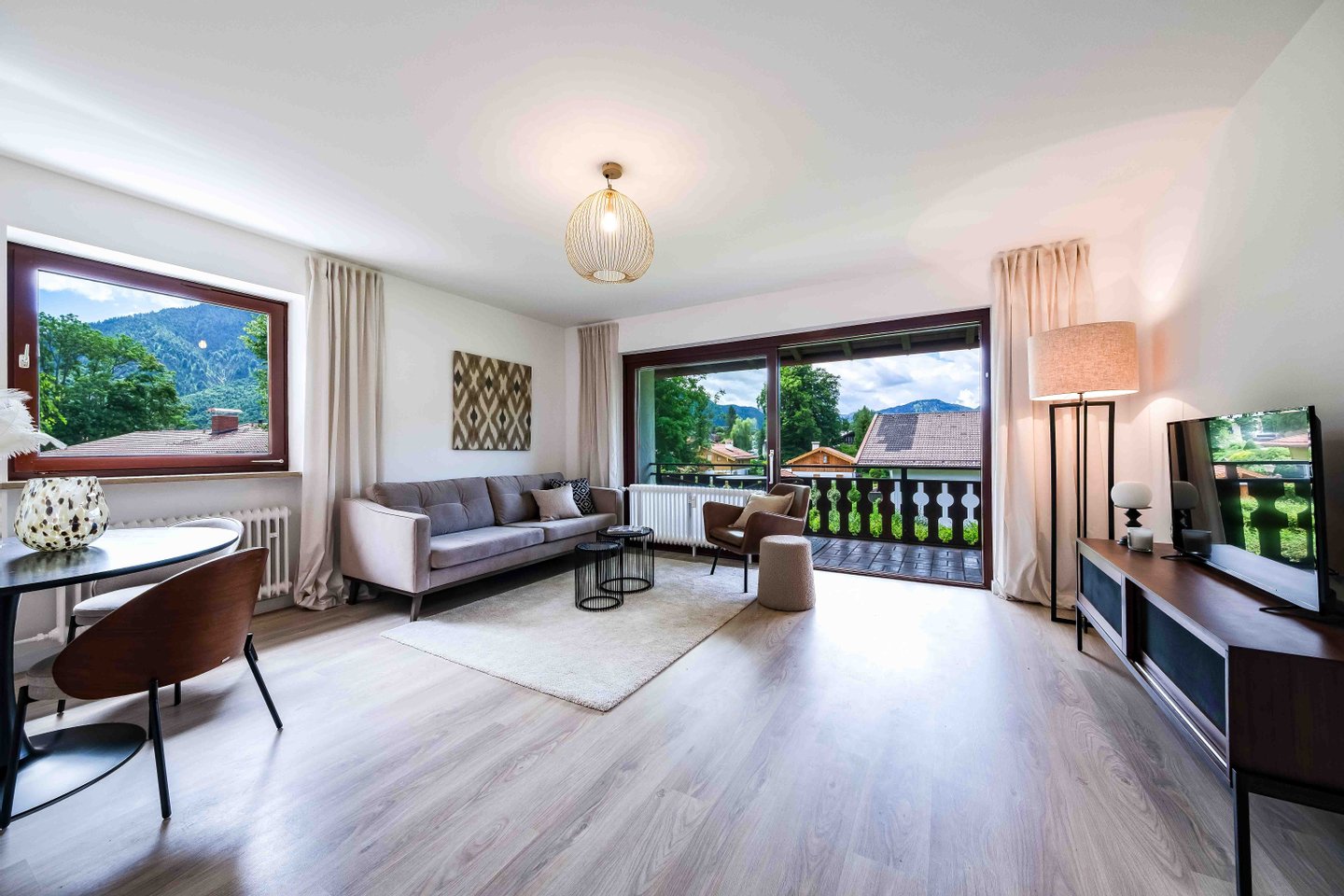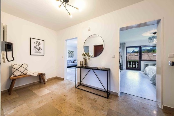 Die Wohnung überzeugt durch eine durchdachte Raumaufteilung und einen großzügigen Eckbalkon mit Ausrichtung nach Osten und Süden. Von hier aus genießt man einen herrlichen Blick auf die umliegende Bergwelt – ideal für entspannte Stunden