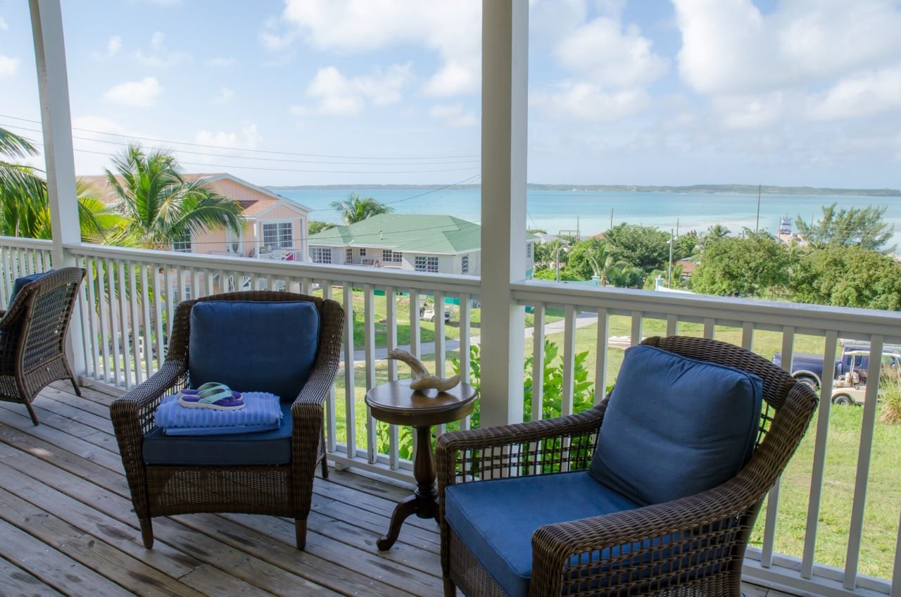 Die 2 umlaufenden Balkone bieten einen atemberaubenden Blick auf den Sonnenuntergang, die malerische Inselstadt Dunmore und Sie können sogar auf die Strandseite blicken. Es bietet immer eine sanfte Brise und einen Ort, von dem aus man ein Buch lesen, einen Cocktail trinken oder einfach nur die Welt an sich vorbeiziehen lassen kann. Wir sind sehr flexibel bei An- und Abreisetagen und werden unser Bestes tun, um Ihnen die Art von besonderem Urlaub zu bieten, den die Bahamas bieten. Tauchen, Schnorcheln, Sightseeing, Wellensurfen oder Liegen und Sonnenbaden am Strand.... Wahrlich, auf den Bahamas ist es besser.
