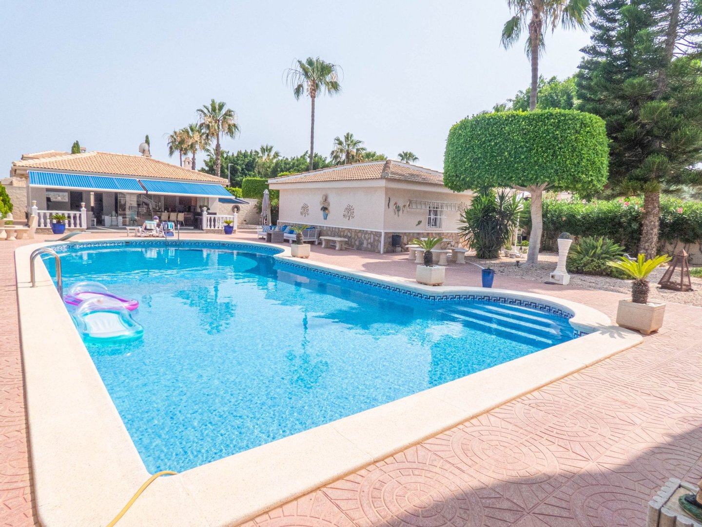 Wenn Sie dort stehen und denken, dass es nicht besser werden kann, werden Ihre Augen von dem einfach BESTEN SOMMERHAUS angezogen, das ich gesehen habe, seit ich Immobilien in Spanien zum Verkauf angeboten habe. Es gibt eine Terrasse, auf der Sie sitzen und beobachten können, was im Pool passiert, mit einer Markise darüber, die bei Bedarf etwas Schatten spendet. Es gibt Glasschiebetüren, die ein vollständig geschlossenes Gartenhaus schaffen oder zur Seite geschoben werden können, um einen nahtlosen Übergang vom Außenbereich zum Gartenhaus selbst zu schaffen - es ist wirklich atemberaubend. Auf der linken Seite befindet sich ein entspannender Loungebereich und auf der rechten Seite ein Essbereich, in dem Sie Ihre Freunde und Familie unterhalten können. Außerdem gibt es einen modernen, gut durchdachten Küchenbereich mit einem Frühstücksbarbereich, der eine natürliche Pause zwischen der Küche und dem Essbereich bietet. Links von der Küche befindet sich ein Duschbad, an das sich ein weiteres Schlafzimmer anschließt. Dieses Sommerhaus wurde nach einem äußerst hohen Standard entworfen und gebaut.