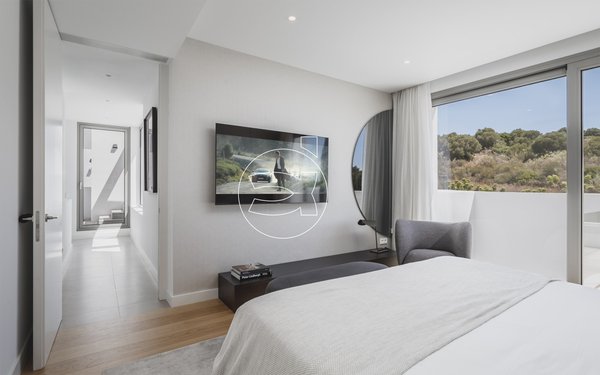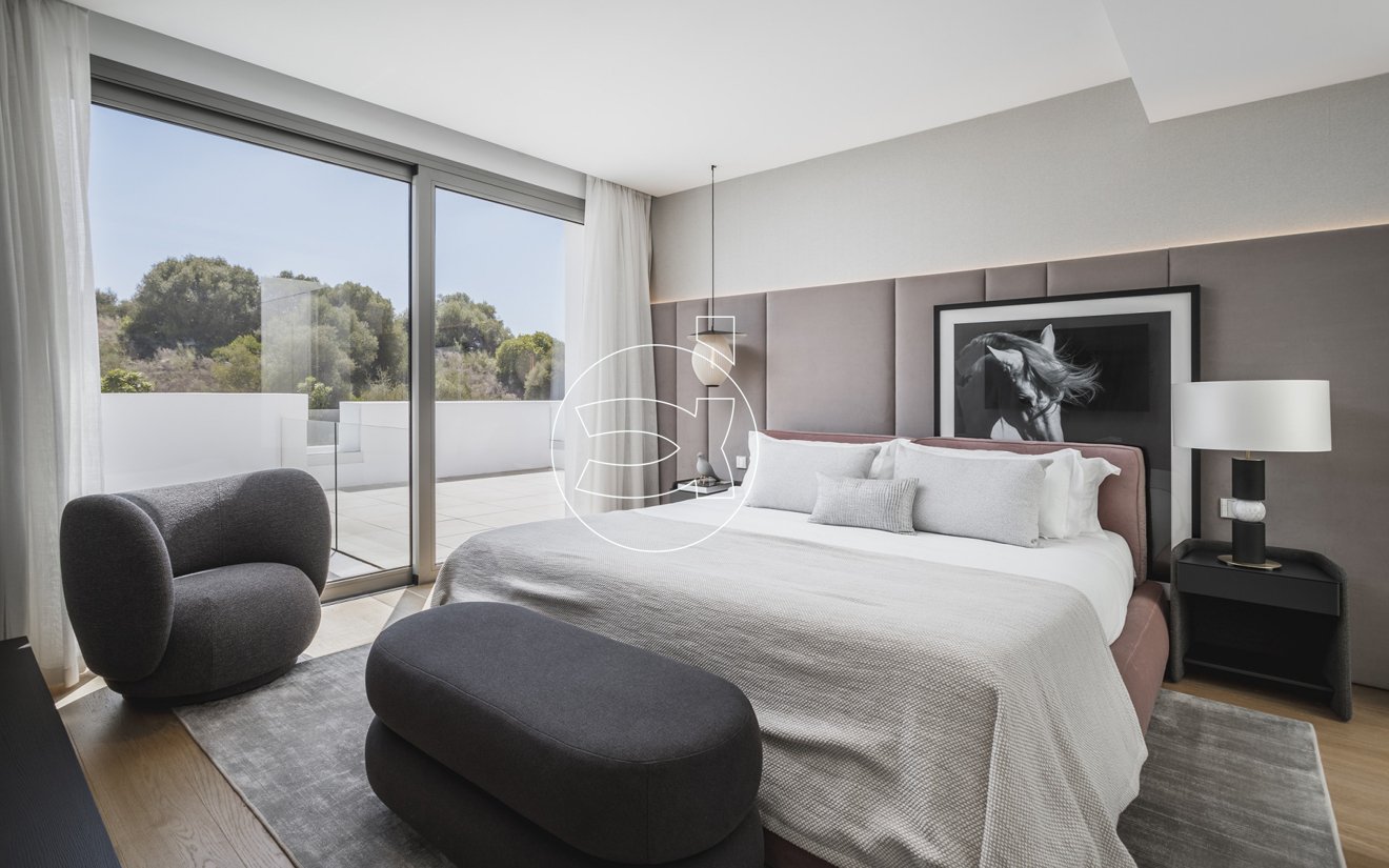 Das Obergeschoss erweitert den Luxus mit zusätzlichen Schlafzimmern, die jeweils über ein eigenes Bad und einen direkten Zugang zu einer Terrasse verfügen.