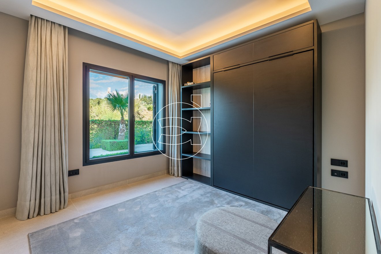 Neubau, Klimaanlage, komplett ausgestattet, Küche ausgestattet, Waschküche, offener Kamin, Jacuzzi, Sauna, Keller, Gästezimmer, Abstellraum, Fitnessraum, Solarium, Sicherheitseingang, Doppelverglasung, Wohnzimmer, Grill, 24Std Sicherheitsdienst, Gästetoilette, private Terrasse, Küche ausgestattet, Hallenschwimmbad, beheiztes Schwimmbad, Fußbodenheizung im gesamten Haus, Waschküche, überdachte Terrasse, elektrische Rollläden, Einbauschränke, geschlossene Wohnanlage, offene Terrasse, Thermalbad - SPA, türkisches Bad, Überwachungskameras