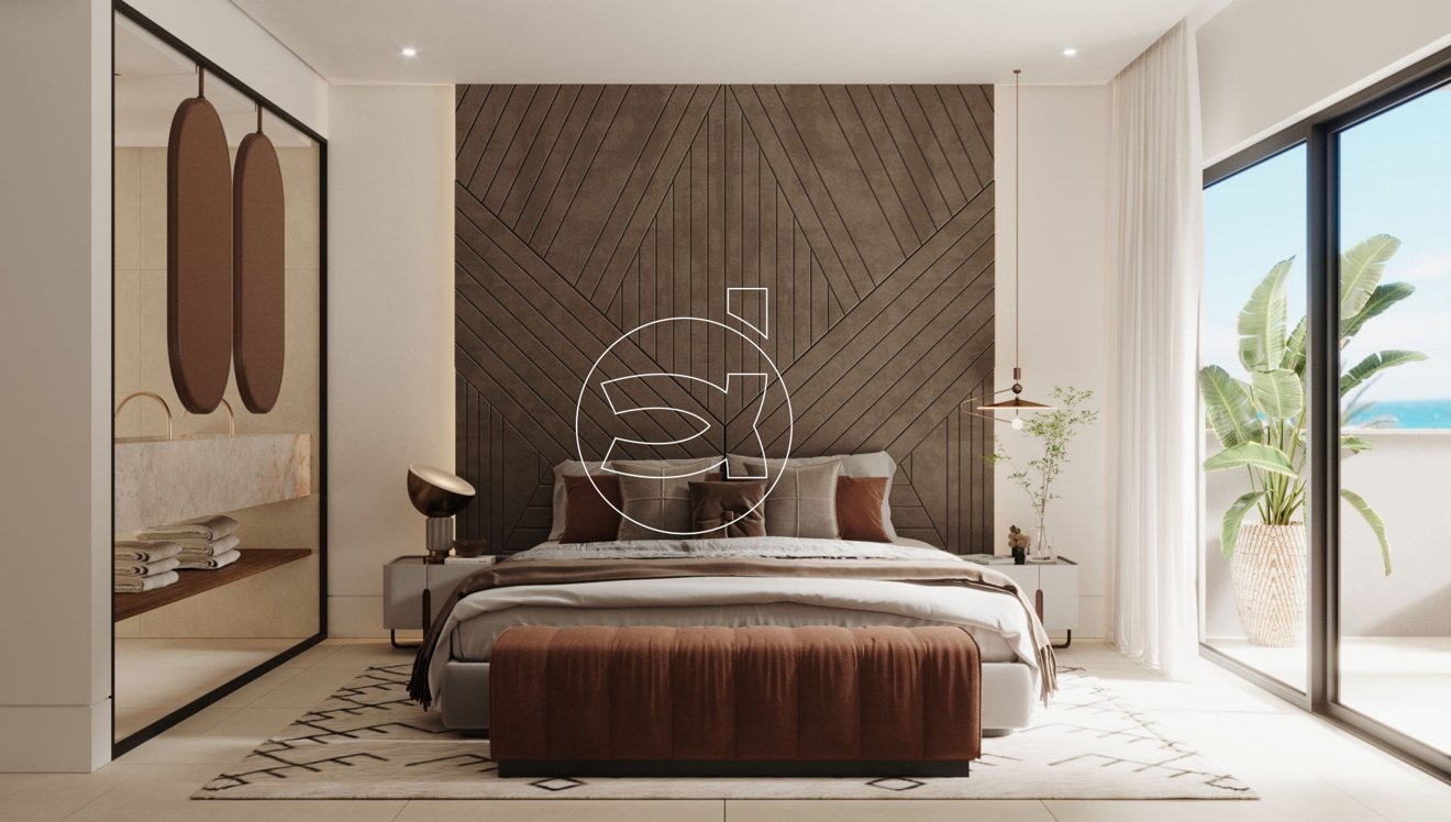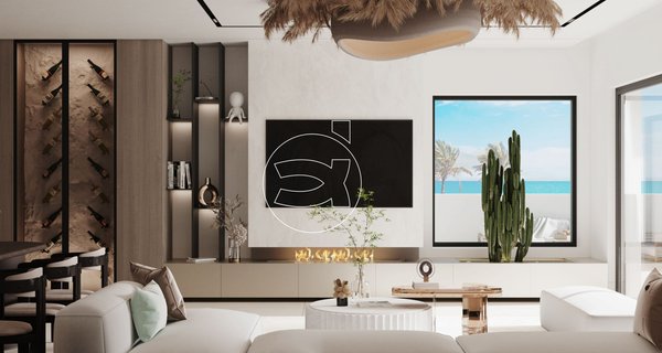 Treten Sie ein in die außergewöhnliche Welt dieser nach Südwesten ausgerichteten Wohnung, die sich sowohl innen als auch außen durch ein elegantes, modernes Design auszeichnet und einen beeindruckenden Panoramablick auf das Meer bietet.