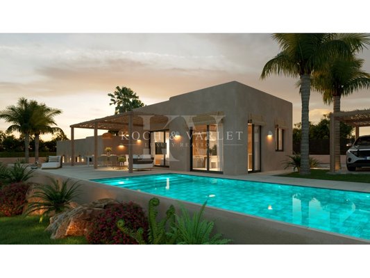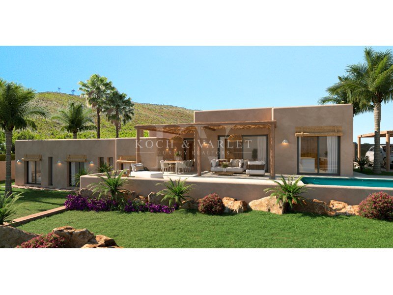 La construction de Villa Loma a commencé en avril 2024, et l'achèvement des travaux est prévu pour mai 2025. Présente une orientation sud-ouest et est inspirée des styles méditerranéen et ibicenco, caractérisée par ses angles arrondis, ses poutres apparentes et ses plafonds voûtés ornés de poutres, rappelant les courbes du paysage méditerranéen. Ses grandes fenêtres équipées de volets garantissent une luminosité naturelle optimale, faisant de cette résidence un havre de tranquillité.