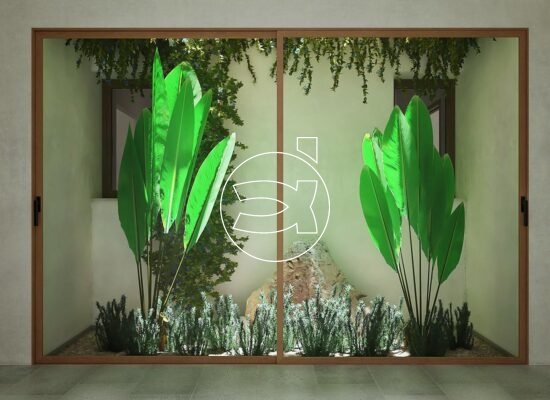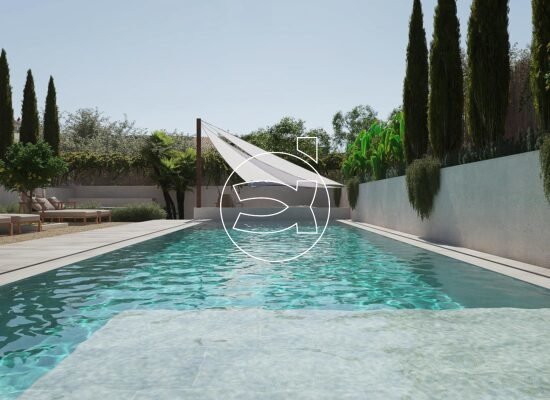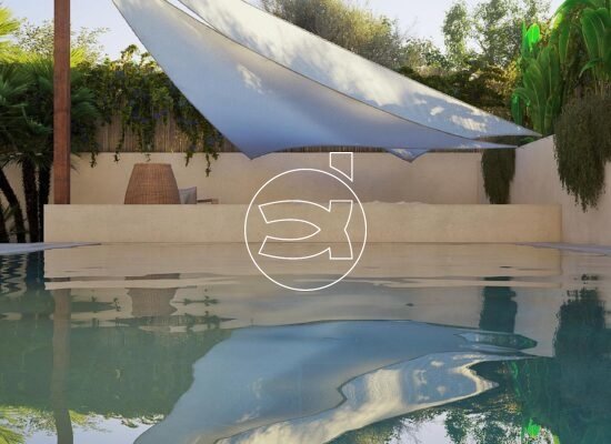 Die Priorität wird dabei auf Raum und Licht gelegt, mit großen Fenstern für eine große Offenheit nach außen, die ein „langsames Leben“ drinnen und draußen begünstigt, mit leichtem Zugang zu dem erstaunlich großen Garten von 180 m² mit einem beheizbaren 30m2 Swimmingpool sowie zahlreichen Entspannungsbereichen.