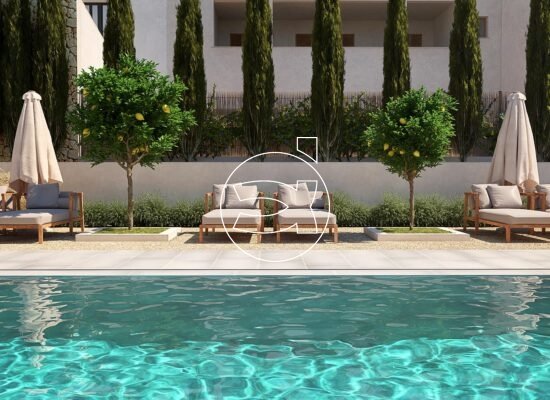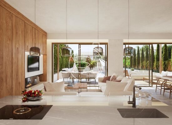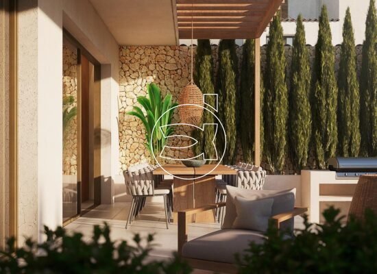 Natürliche Bauelemente wie Holz und Naturstein werden für die Innenausstattung verwendet, um das wahre Wesen Mallorcas widerzuspiegeln.