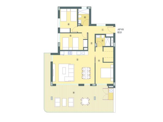 Diese hübschen Appartements verfügen über eine konstruierte Fläche von ca. 119 m² - 144 m² (inklusive Terrassen) mit