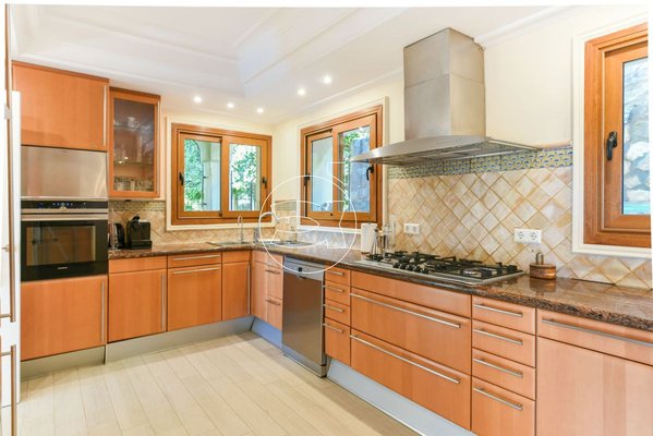 Die Küche öffnet sich zu den großen Terrassen mit unglaublichem Panoramablick auf das Meer und die gesamte Küstenlinie. Die fantastische Küche ist mit dem Esszimmer der Familie verbunden.