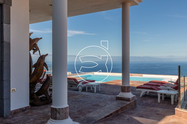 Hier finden Sie die Master-Suite mit Einbauschränken, einem luxuriösen Bad mit Regendusche, Doppelwaschbecken und Jacuzzi-Badewanne sowie einer eigenen Terrasse mit unübertrefflichem Blick auf den Atlantischen Ozean und die Nachbarinsel La Gomera.