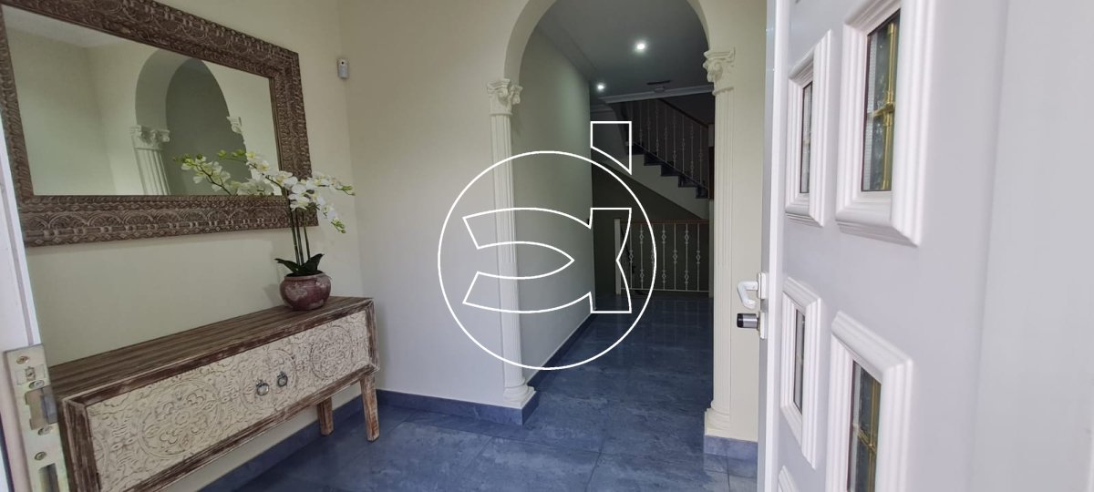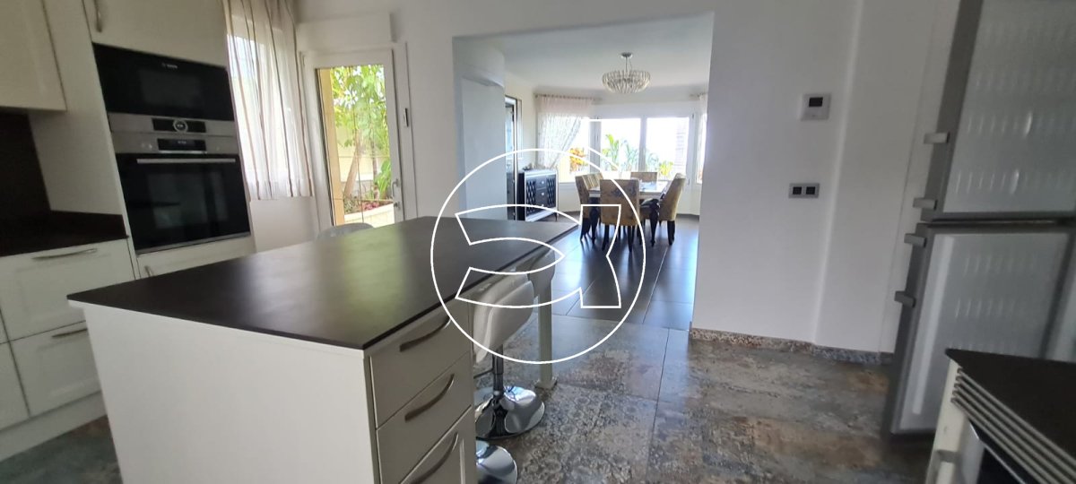 Auf der Hauptetage befindet sich eine große, voll ausgestattete, halb-unabhängige Küche, die mit einem eleganten Esszimmer verbunden ist, welches eine direkten Zugang zur Terrasse hat, die zum Garten führt, wo es einen wunderschönen beheizten Pool und einen großen Whirlpool, eine separate Dusche und eine große Anzahl von Pflanzen und Bäumen gibt.