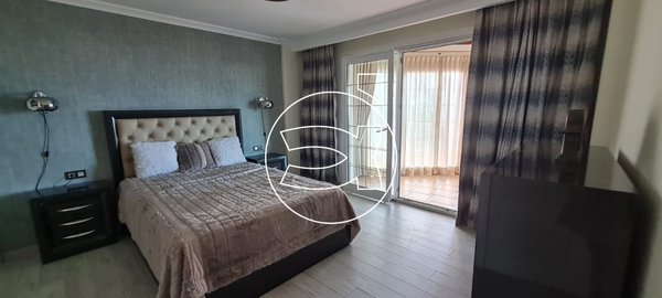 Auf der gleichen Etage gibt es ein komplettes Badezimmer mit Dusche, ein sehr komfortables Wohnzimmer mit hochwertigen Möbeln, ebenfalls mit direktem Zugang zum Pool sowie ein großzügiges Schlafzimmer mit einem großen Schreibtisch, der auch als Büro genutzt werden kann.