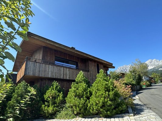 Beim Bau dieses modernen Chalets wurde Bedacht darauf gelegt, ein heimeliges Wohngefühl über drei Etagen zu realisieren. Bereits beim Zufahren fällt die gelungene Architektur im harmonischen Zusammenspiel mit der passend gewählten Gartenanlage auf. Die Fassade ist geprägt durch Holz in symmetrischer Verarbeitung. Zwei Fahrzeuge finden Platz im Freien direkt vor dem Haus sowie ein weiteres in der geräumigen Garage.