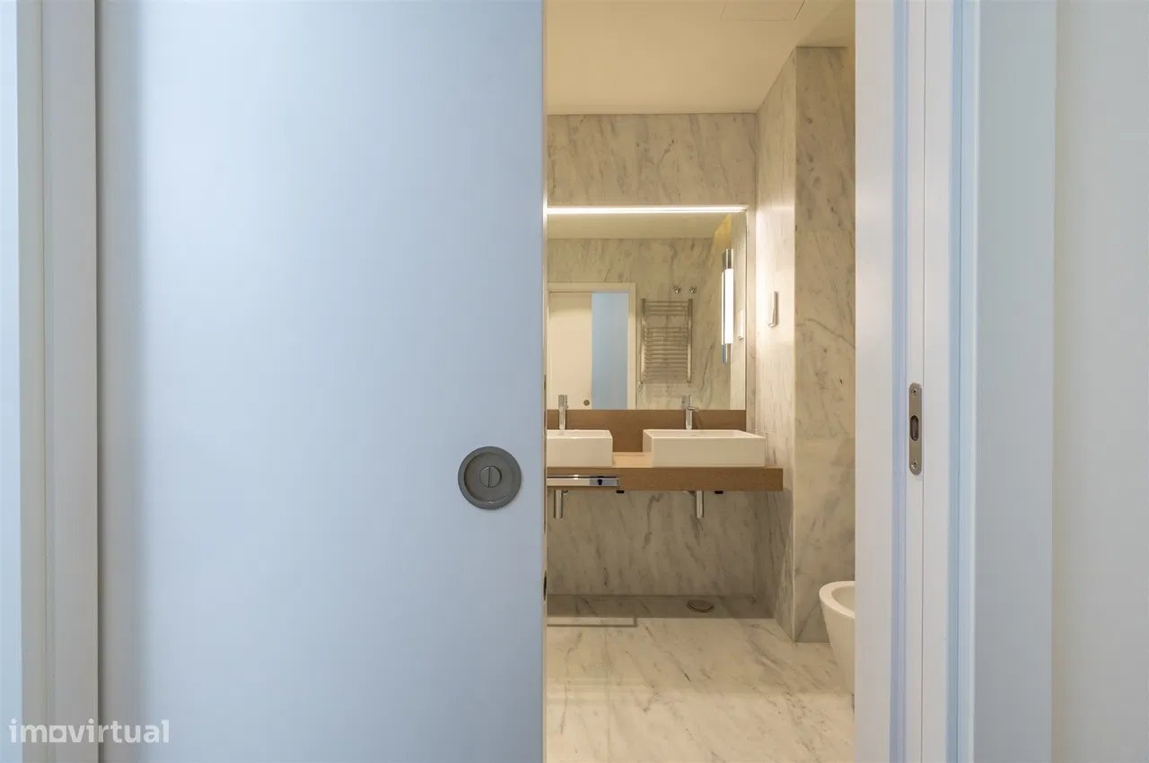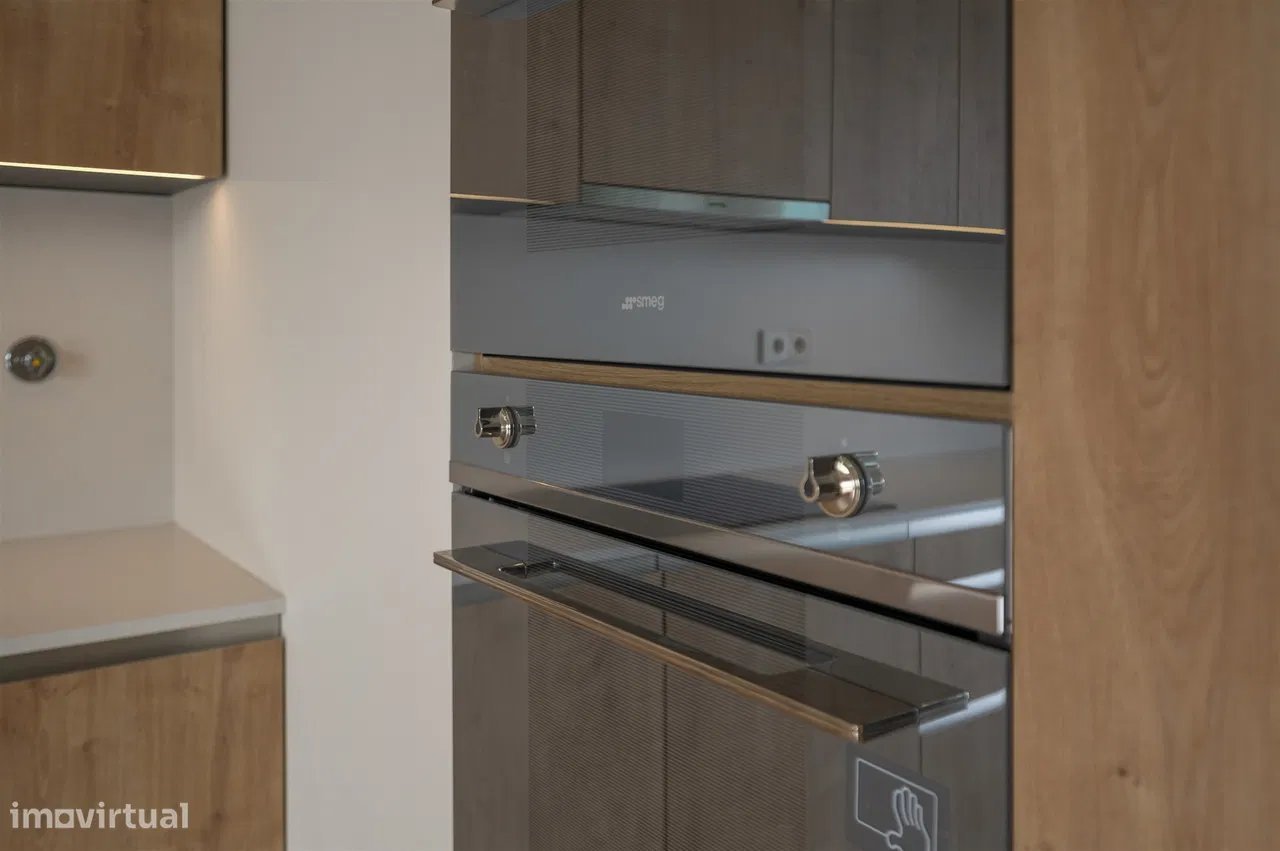 Die Wohnung verfügt über 2 Schlafzimmer, alle mit eigenem Bad, mit modernen Linien und Top-Materialien, ein Gästebad, eine Küche mit hochwertigen SMEG-Geräten mit Verbindung zu einem großen Wohnzimmer. Sowohl das Wohnzimmer als auch die Küche haben durch große Schiebefenster direkten Zugang zur herrlichen Terrasse.