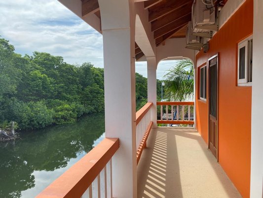 Im Obergeschoss finden Sie ein Apartment mit 2 Schlafzimmern und 1 Badezimmer. Jedes Schlafzimmer öffnet sich zu einer Veranda mit herrlichem Blick auf den ruhigen Kanal.
