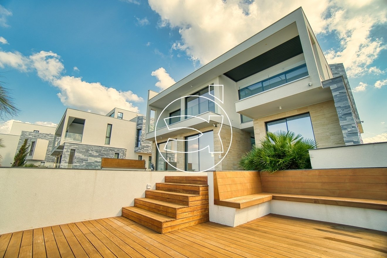 Die Villa erstreckt sich über vier Etagen und verfügt über einen einzigartigen Aufzug mit Glastüren, der einen bequemen Zugang zur gesamten Residenz bietet.