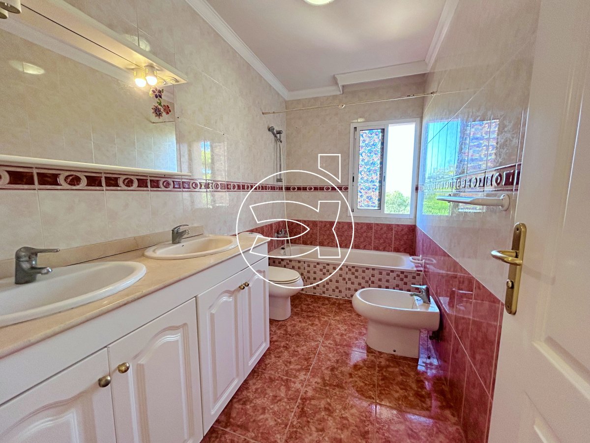 Zwei große Schlafzimmer, wobei das Hauptschlafzimmer ein eigenes Bad sowie einen Balkon mit teilweisem Meerblick hat.
