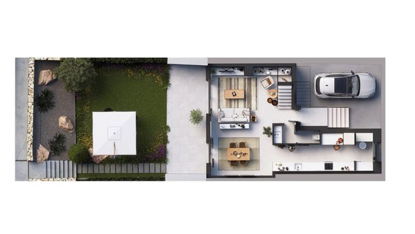 Diese wunderschönen Reihenhäuser verfügen über eine konstruierte Fläche von ca. 179 m² - 212 m² (verschiedene Modelle, inklusive Terrassen) mit