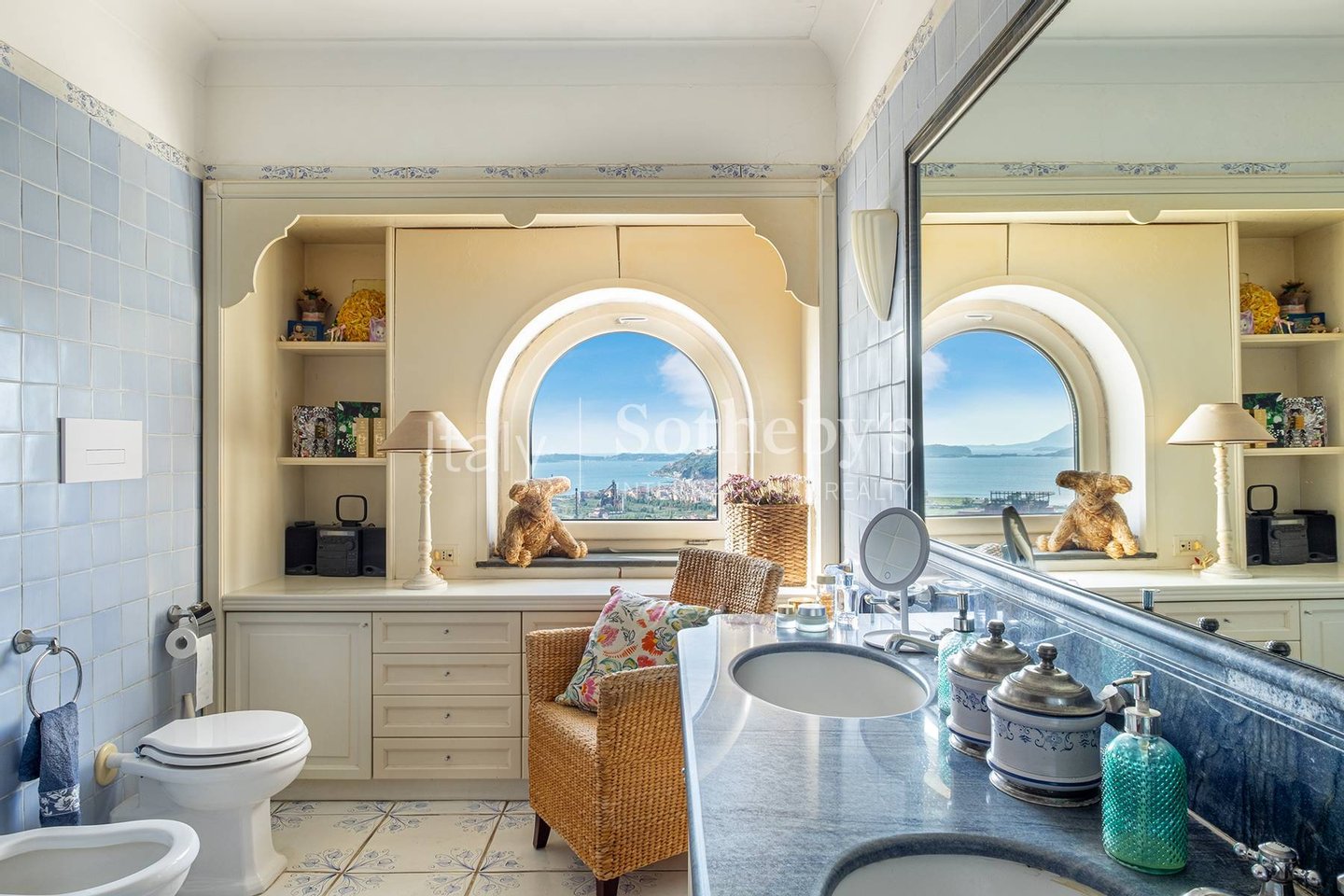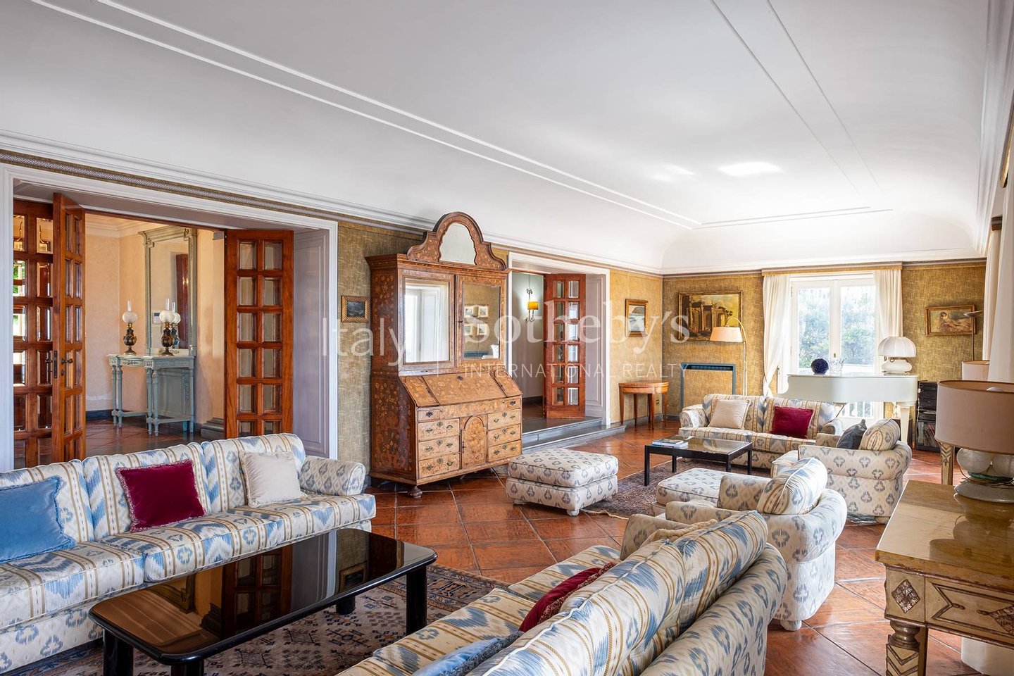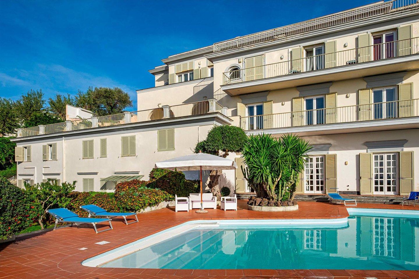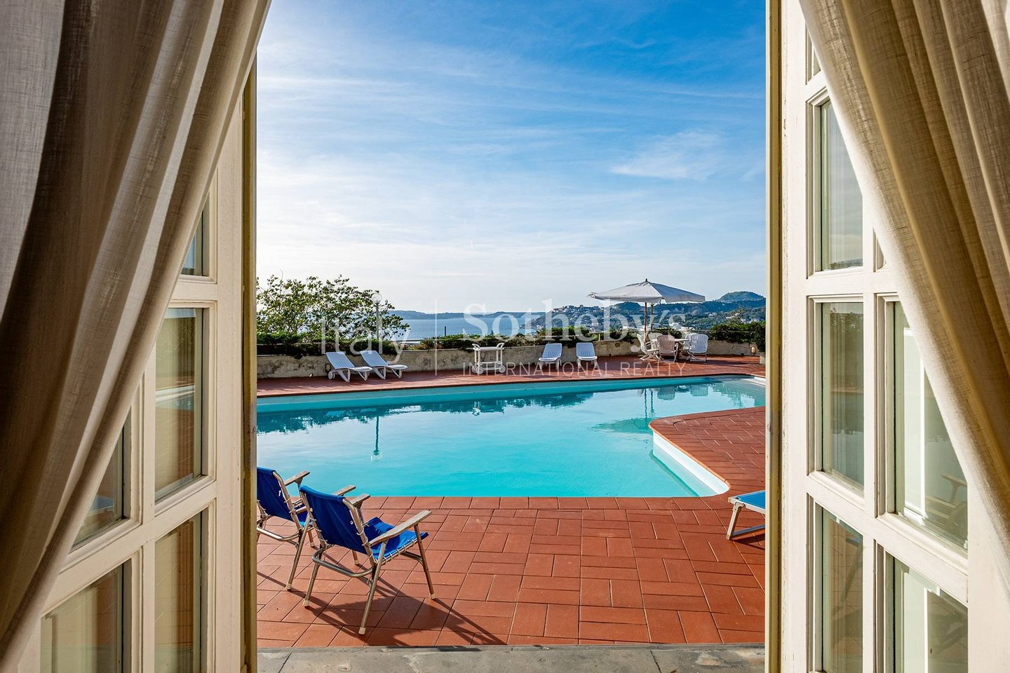 Diese einzigartige Residenz, mit über 2000 Quadratmetern Innenraum und 6.500 Quadratmetern Außenbereich, ist mit einem wunderschönen und großzügigen Pool ausgestattet. Das Anwesen bietet eine außergewöhnliche Aussicht, die sich bis zu den Pontinischen Inseln erstreckt, vorbei an Ischia und Procida. Jeder Raum innerhalb der Villa öffnet sich zu weitläufigen Terrassen nach Westen, die dank ihrer Ausrichtung zu allen vier Himmelsrichtungen bezaubernde Sonnenuntergänge bieten. Aktuell ist die Villa in drei Wohneinheiten unterteilt, zusätzlich zum Personalhaus, zwei Nebengebäuden und einem großen Gemeinschaftssaal mit direktem Zugang zum Pool. Dank ihrer Struktur könnte sie jedoch problemlos in eine Unterkunft mit über 25 Zimmern, jeweils mit eigenem Bad, umgewandelt werden. Um Komfort und Bequemlichkeit zu gewährleisten, ist jeder Stock des Anwesens mit einem internen Aufzug ausgestattet. Darüber hinaus verfügt die Residenz über mehrere Parkplätze.