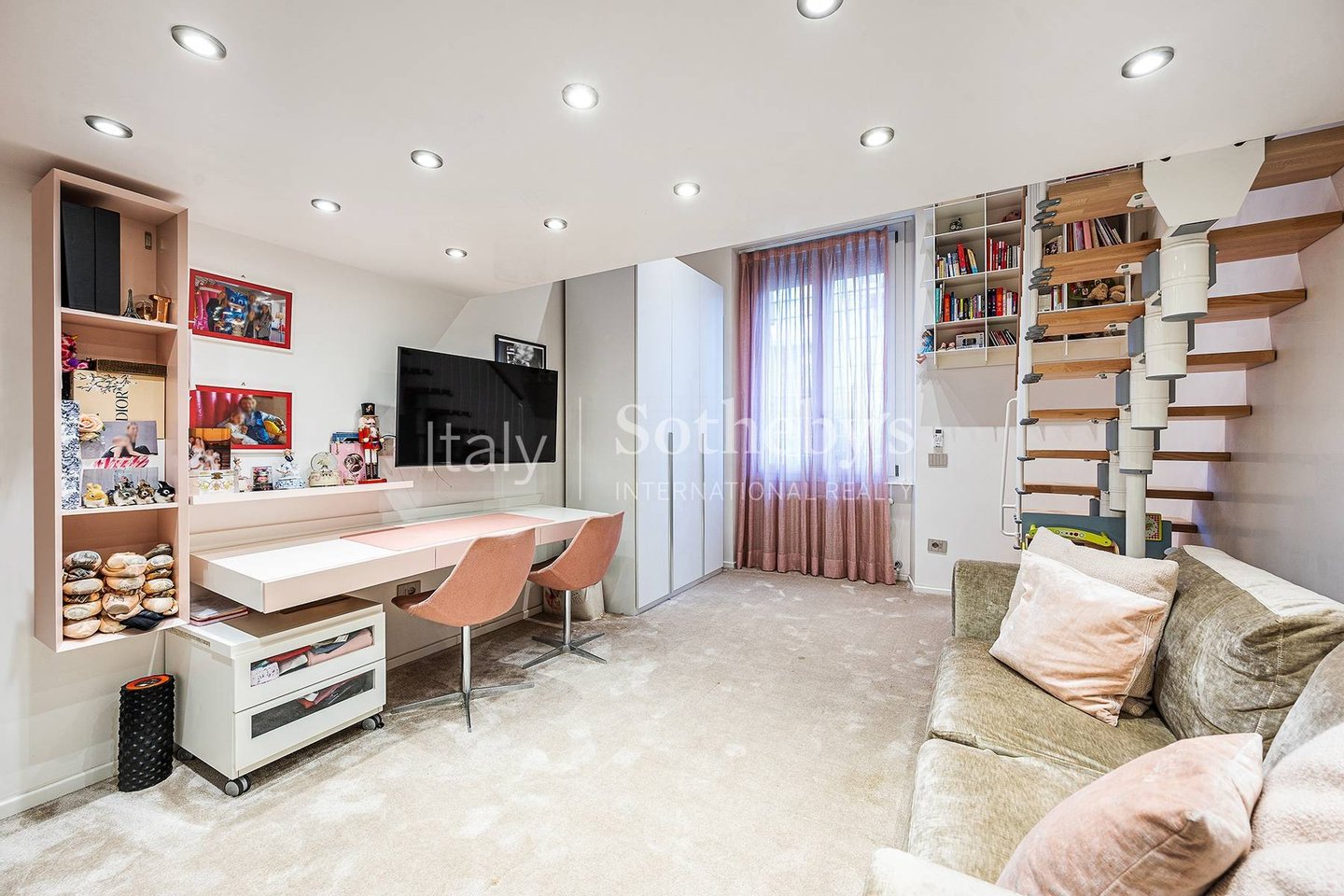In einem eleganten Gebäude aus dem Jahr 1930 im Viertel Parioli befindet sich eine exklusive Wohnung von etwa 300 Quadratmetern mit einem 350 Quadratmeter großen Garten. Die elegante und raffinierte Renovierung im Jahr 2021 hat die Innen- und Außenbereiche aufgewertet und modernisiert, wodurch die Immobilie zu einem perfekten Zuhause für diejenigen wurde, die einen großzügigen Wohnraum suchen. Auf zwei Ebenen entwickelt, zeichnet sie sich durch drei Zugänge aus: vom Garten, vom Wohnbereich und von der Schlafzimmerebene. Der einladende Eingang führt in das große Wohnzimmer mit Kamin und den Essbereich. Die hochmoderne, voll ausgestattete Küche neben dem Wohnzimmer und ein Gästebad machen den Bereich funktional und gemütlich. Große Fenstertüren führen in den wunderschönen und gepflegten Garten mit marokkanischer Ecke, Essbereich mit Grill, Spielbereich und zwei Whirlpools. Eine breite und bequeme Treppe führt in die obere Etage, wo sich das große Hauptschlafzimmer mit eigenem Bad, zwei Schlafzimmer mit Zwischengeschossen, ein Schlafzimmer mit Balkon, ein begehbarer Kleiderschrank mit Arbeitsbereich und ein weiteres geräumiges Bad befinden. Elegante Einbauschränke sind im gesamten Haus vorhanden. Die fest installierte Einrichtung, die im Verkauf enthalten ist, ist dank hochwertiger Materialien von hoher Qualität. Alle Installationen sind modern, die Fußbodenheizung ist autonom und wird durch Designheizkörper ergänzt. Einbruchmeldeanlagen, Klimatisierung und Smart-Home-Systeme sind vorhanden. Eine Waschküche und ein Personalzimmer mit Bad runden das Angebot ab. Die Wohnung profitiert von einer herrlichen Ausrichtung, die den ganzen Tag über angenehmes Tageslicht ermöglicht. Ein überdachter Parkplatz mit Aufzug kann separat erworben werden.
