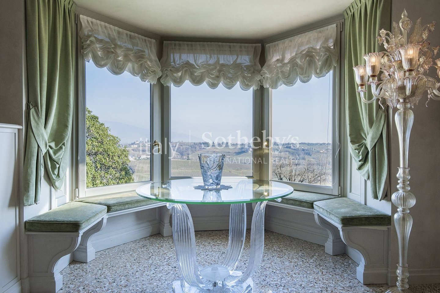 In den Hügeln, nur fünf Minuten vom Zentrum von Conegliano entfernt, befindet sich diese elegante Landvilla mit Park, Hausmeisterhaus und Nebengebäuden - mit herrlichem Panoramablick auf eine Landschaft, die aufgrund ihrer Schönheit unter dem Schutz der UNESCO steht.