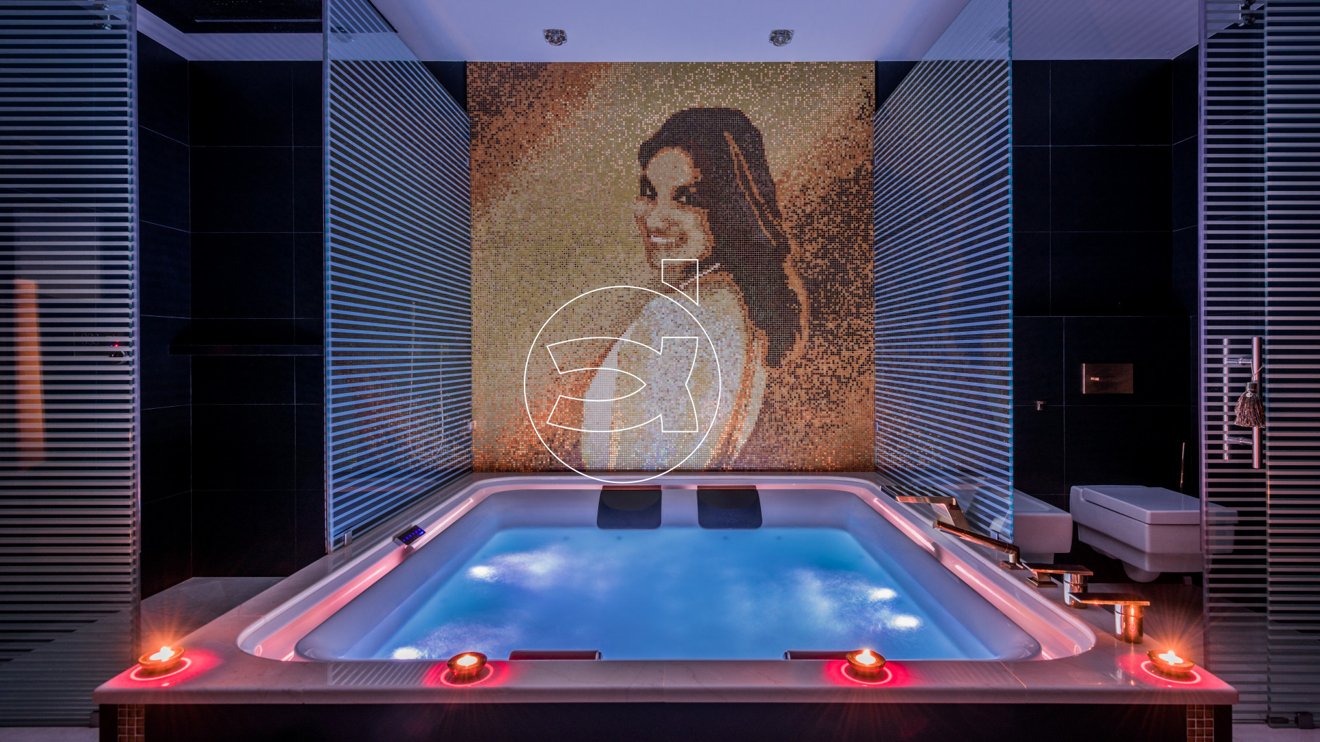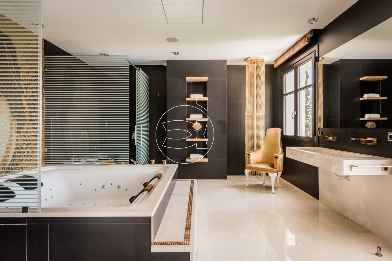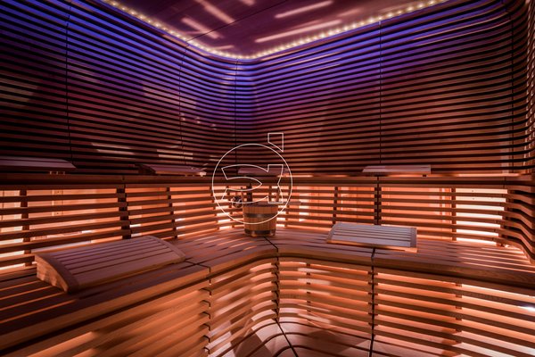 Die untere Ebene der Villa bietet ein Hammam-Bad, eine Sauna, einen Waschraum, eine Gästetoilette und zwei separate Gäste- oder Personalwohnungen.