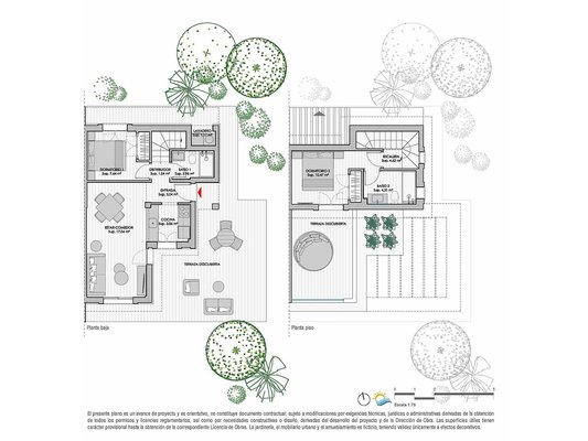 Diese sehr schönen Doppelhaus-Villen verfügen über eine konstruierte Fläche von 75 m² mit