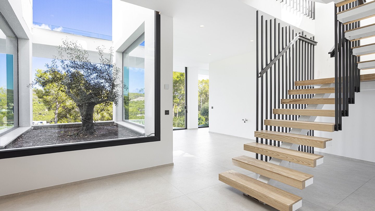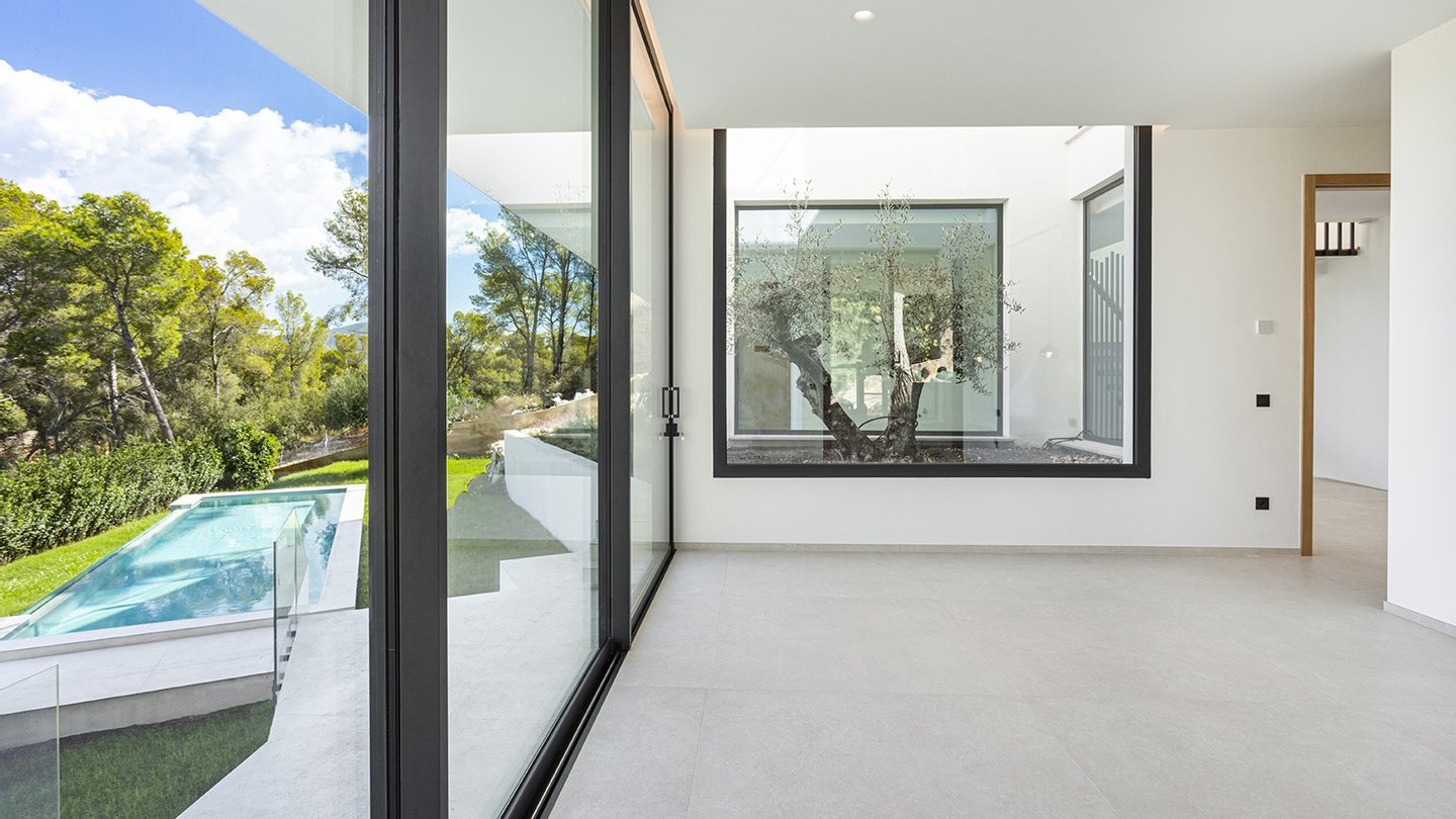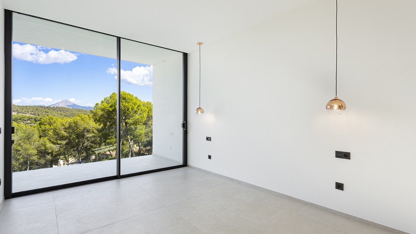 Diese exklusive, sich im Bau befindliche Villa wird konstruiert auf einem ca. 1158 m2 großen Grundstück und verfügt über eine Wohnfläche von ca. 345 m2. Sie verfügt über 4 Schlafzimmer, Ankleideräume, 4 Bäder (3 davon en suite), ein Gäste-WC sowie einen Abstellraum. Entspannen Sie sich bei einem sensationellen Blick auf das Tramuntanagebirge und genießen Sie die Ruhe. Die perfekte Wohlfühloase! Architektonische Raffinesse, modernes Design und energieeffiziente Haustechnik machen diese Immobilie zu einem echten Schmuckstück. Die hochwertige Ausstattung sorgt für hohen Wohnkomfort: Fußbodenheizung, Zentralheizung, Klimaanlage, neueste Wärmepumpentechnologie, Solarenergie, Einbauschränke, Alarmanlage, Doppelgarage und vieles mehr. Die Fertigstellung ist für Herbst/Winter 2024 geplant.