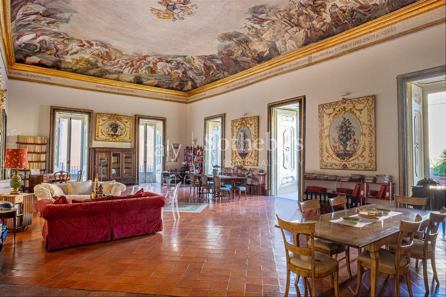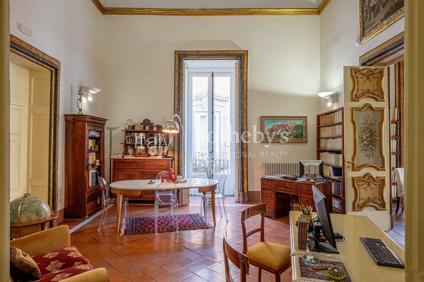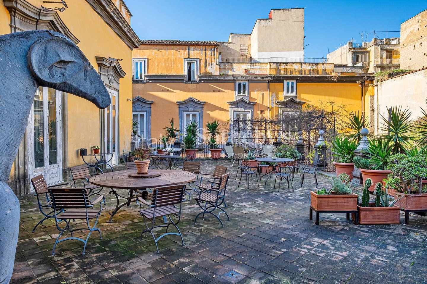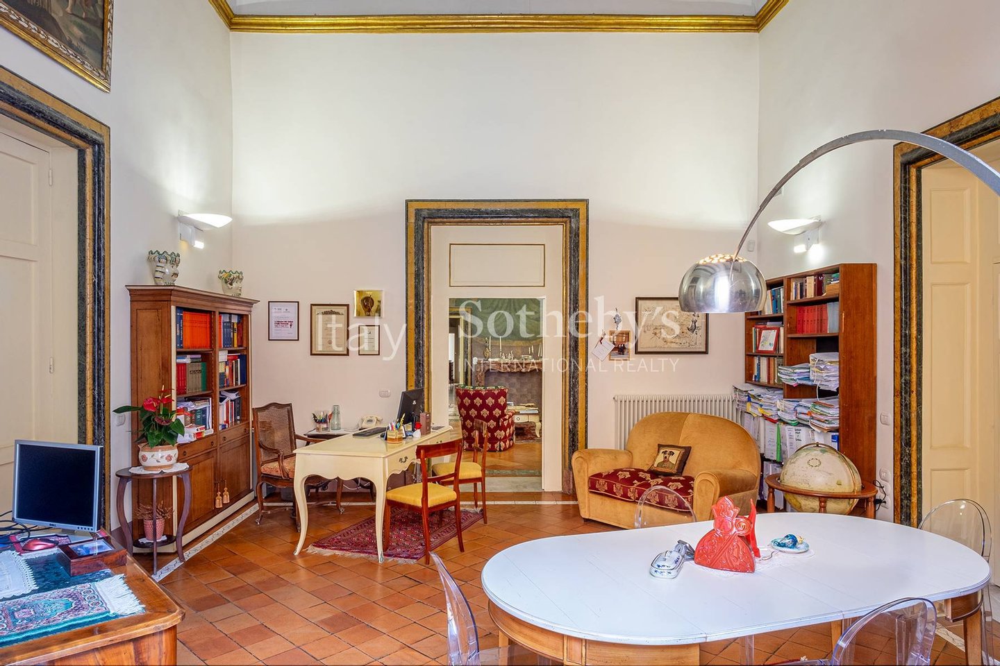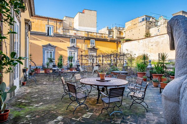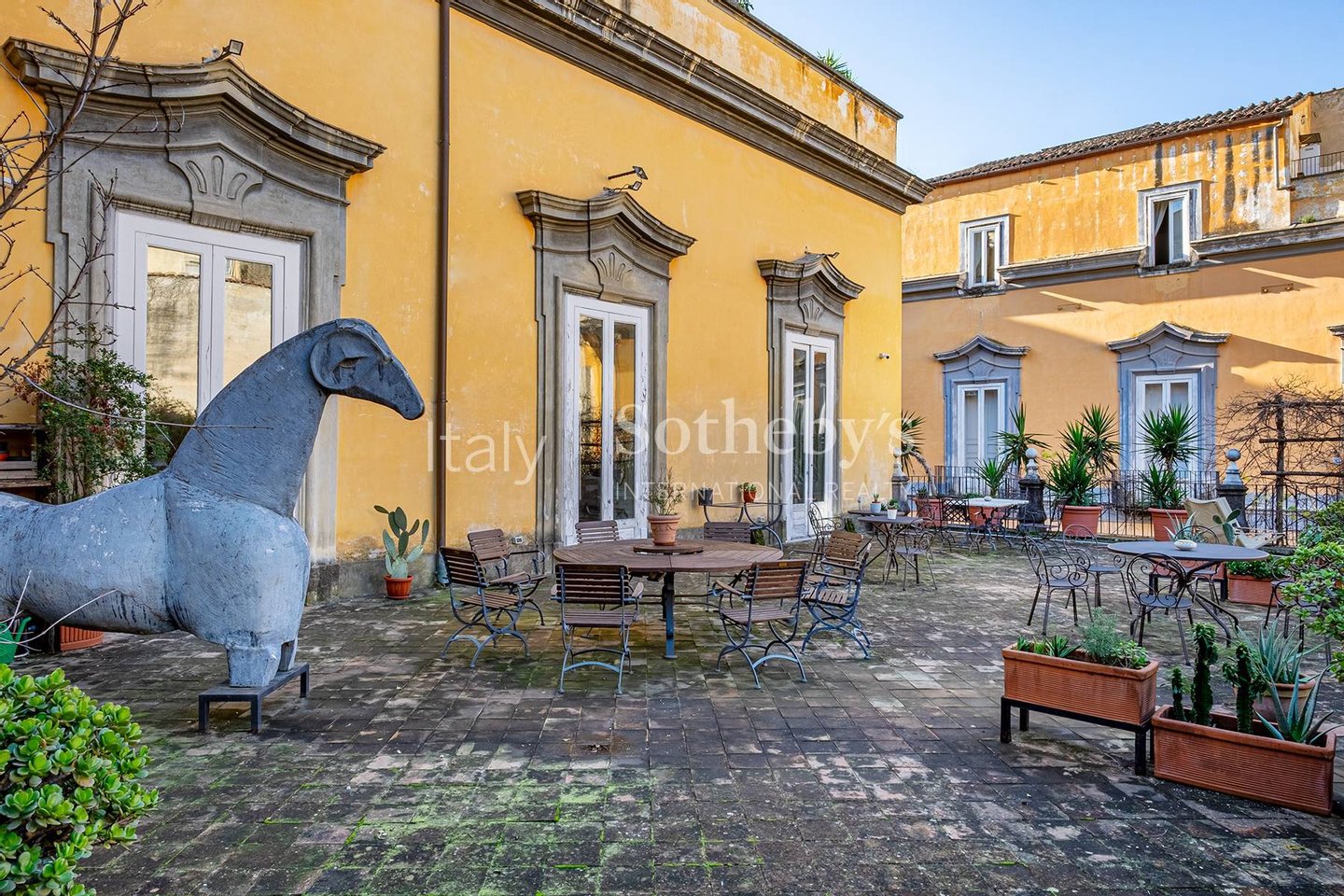 Das Palazzo Marigliano wurde zu Beginn des 16. Jahrhunderts in Neapel von Bartolomeo Di Capua erbaut und gilt als das schönste Beispiel der Renaissance-Architektur im historischen Zentrum von Neapel. Di Capua errichtete sein prächtiges "Hofhaus" mit Ställen, Gärten, Gemüsegärten und verschiedenen Dienstleistungen. Der Palazzo Di Capua blieb bis Ende des 18. Jahrhunderts im Besitz der Familie, und tatsächlich wurde seine ursprüngliche Struktur erhalten. Die Wohnung im zweiten Stock ist die bedeutendste Residenz des Palastes. Über 500 Quadratmeter Fläche mit großen Repräsentationsräumen, die mit Fresken und Renaissance-Dekorationen verziert sind. Der große Hauptsalon öffnet sich zu einer großen Terrasse, die auf einen intimen Garten blickt, von dem aus die Konstruktionsmerkmale des antiken Gebäudes geschätzt werden können. Der Repräsentationsbereich wird durch ein Büro vervollständigt, das auf den historischen Innenhof des Palastes und eine Kapelle blickt, das wahre Herz des Anwesens. Zwei Schlafzimmer mit en-suite Badezimmern, ein Gästebad und eine geräumige Küche vervollständigen dieses prächtige Anwesen.