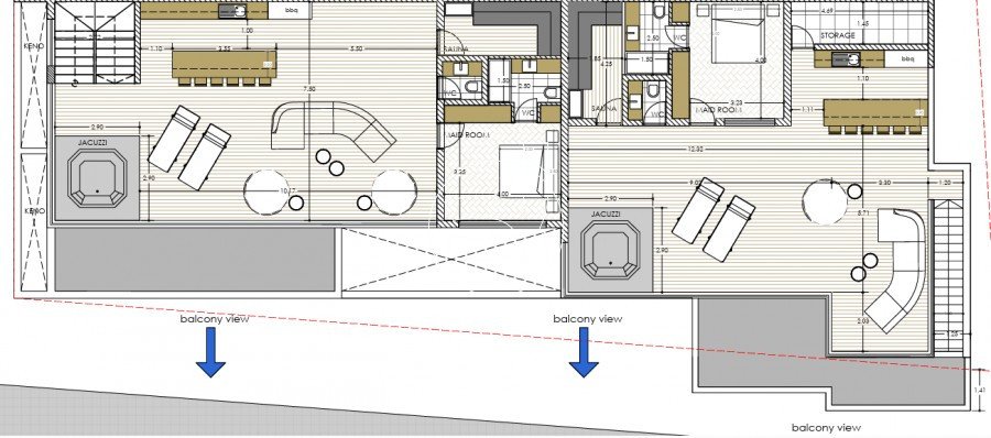 Diese Einheit hat eine Dachterrasse von 103 m² mit einem zusätzlichen Raum. Der Jacuzzi kann bei Bedarf durch einen Swimmingpool ersetzt werden.