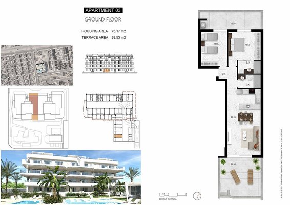 Diese sehr schönen und modernen Wohnungen verfügen über eine konstruierte Fläche von 98 m² - 116 m² (verschiedene Modelle, inklusive Terrassen) mit