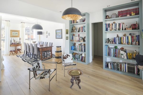 Zwischen dem Invalidendom und dem Grand Palais, in einem Gebäude aus den 1970er Jahren, im 5. Stock mit Aufzug, eine Ost-West-Wohnung von 161 m2 mit 3 m Decken, komplett renoviert von einem renommierten Architekten mit außergewöhnlicher