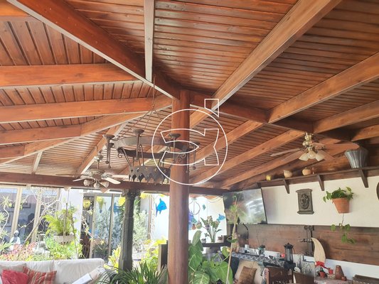 Zudem verfügt es übr eine schöne große hölzerne Pergola mit ca. 40m2, wo man sitzen kann und einen wunderbaren Chill-out-Bereich. Es gibt mehrere Terrassen mit Sitzbereich und ein wenig weiter unten gibt es ein separates Gebäude, eine große Gästewohnung mit 1 Schlafzimmer, 1 Bad, einer voll ausgestatteten Küche sowie einer großen Terrasse.