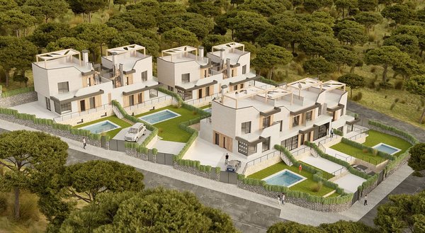 Bei der Planung dieser Wohnanlage standen Komfort und Lebensqualität im Vordergrund. Sie finden hier 8 geräumige und helle Doppelhaushälften und Reihenhäuser mit jeweils 3 Schlafzimmern und 2 Bädern, die sich auf zwei Etagen verteilen. Die zugehörigen Grundstücke sind bis zu 412 m² groß. Erfreuen Sie sich am wunderschönen Ausblick durch die großen Fenster auf die umliegenden Berge und genießen Sie das ganze Jahr über die Ruhe und die herrlichen Temperaturen dieser mediterranen Gegend.