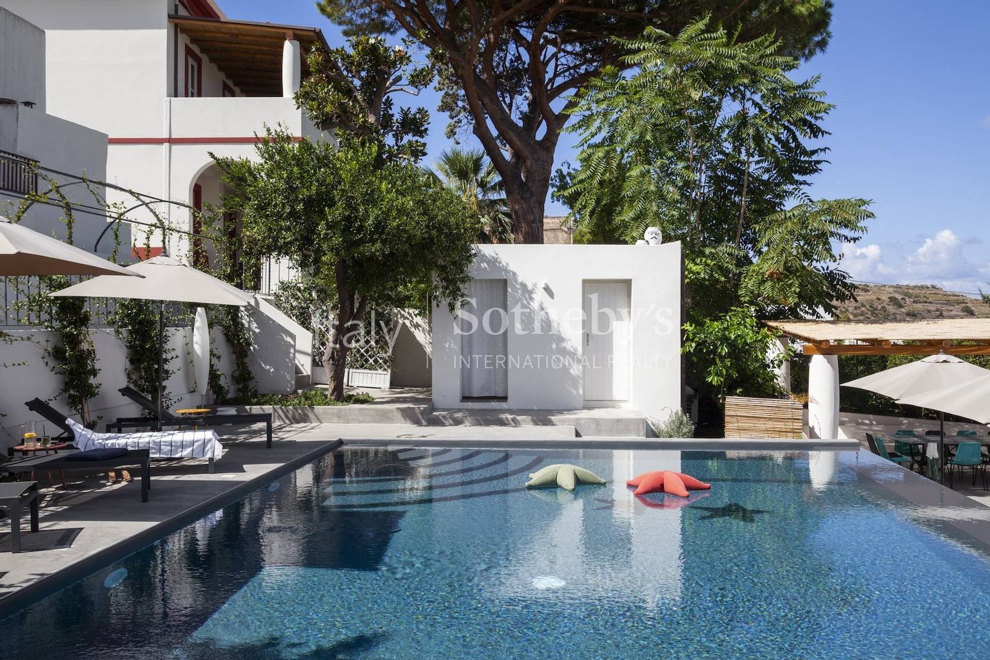 Nestled in the magnificent setting of the Aeolian Islands, Villa Malvasia is an elegant blend of ancient flavors, modernity, art, and design. It is located in Malfa, in a privileged position with views of the Tyrrhenian Sea and the islands of Panarea and Stromboli.