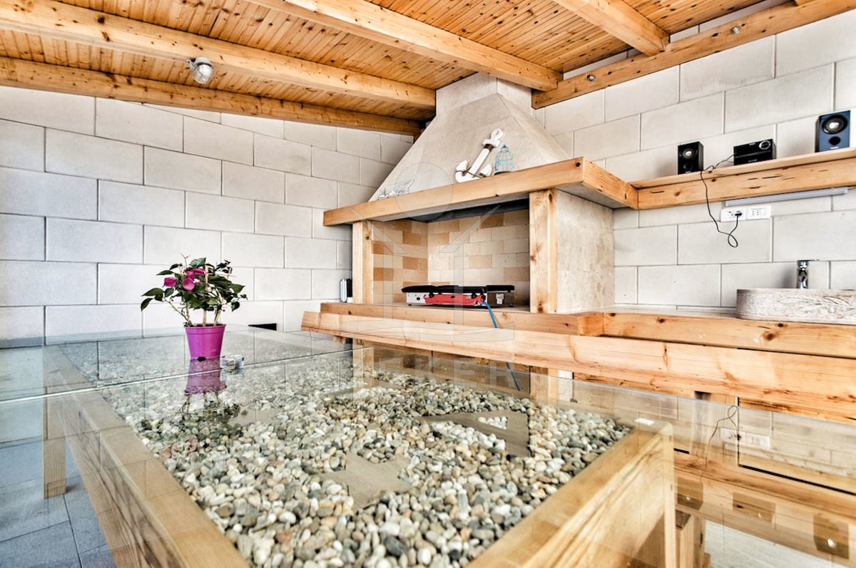 Im Erdgeschoss befindet sich neben einem Studio-Apartement mit Terrasse auch eine Taverne, während Sie in den beiden oberen Stockwerken jeweils eine geräumige Wohnung mit vier Zimmern, die mit Balkon und grandiosem Meerblick begeistert, finden.