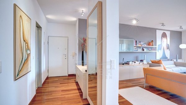 Verteilt auf eine Gesamtwohnfläche von ca. 102 m² bietet diese Wohnung Ihnen einen sehr schönen hellen und offenen Wohnbereich mit moderner Sitzlounge und integrierter Einbauküche (in der keine Wünsche offen bleiben) sowie einem stylischen Essplatz. Über einen kleinen Flurbereich gelangen Sie zu den beiden Schlafzimmern sowie das Wellness-Bad und Gäste-WC.