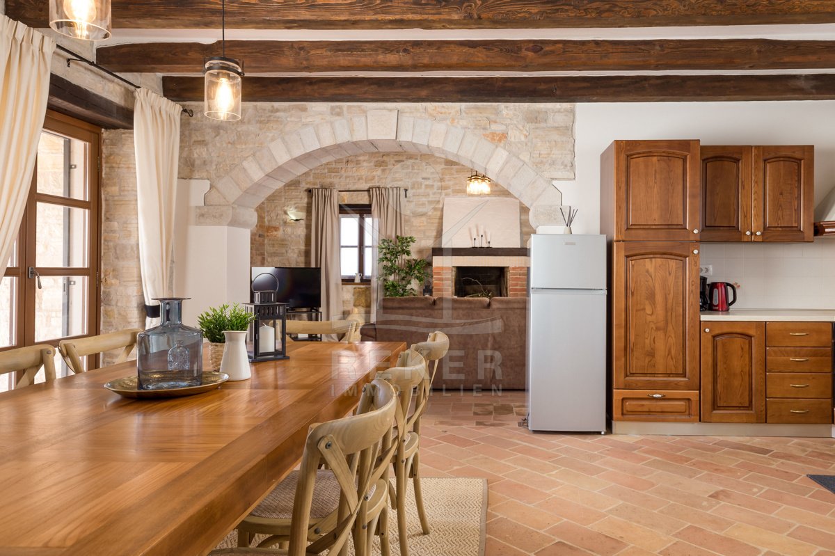 Dieses traumhafte Steinhaus mit großem Pool befindet sich an einem ruhigen Ort im zentralen Teil Istriens. Ob eine Pause vom Alltag oder als Domizil für die ganze Familie, diese Immobilie bietet höchsten Komfort auf einem Grundstück von rund 1.750 m².