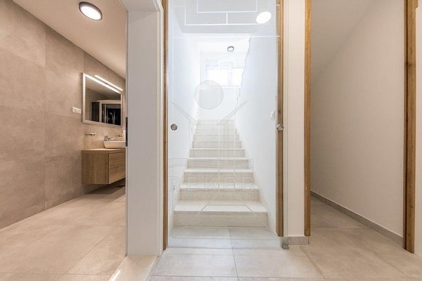Folgen Sie den Stufen nach ganz oben, denn hier erwartet Sie eine Dachterrasse mit atemberaubendem Ausblick und einem Wellnessbereich mit Sauna.