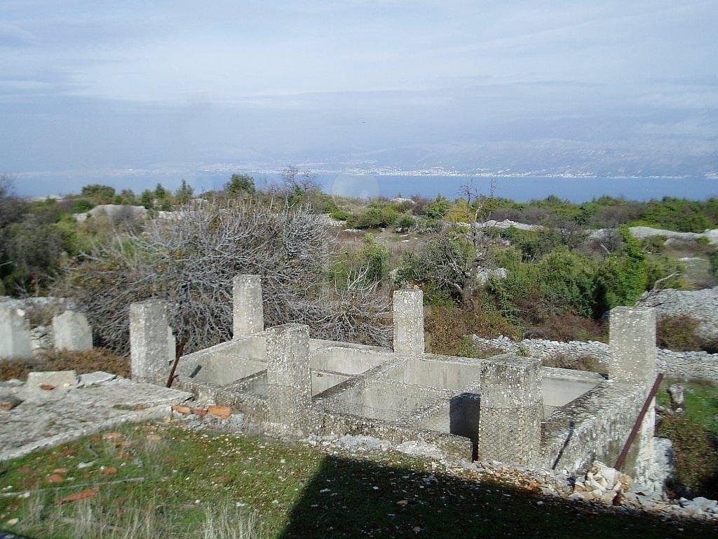 Dieses Grundstück mit Meerblick hat eine Fläche von 124.000 m² und Gebäude mit einer Gesamtwohnfläche von 770 m², die allerdings renoviert werden müssen.