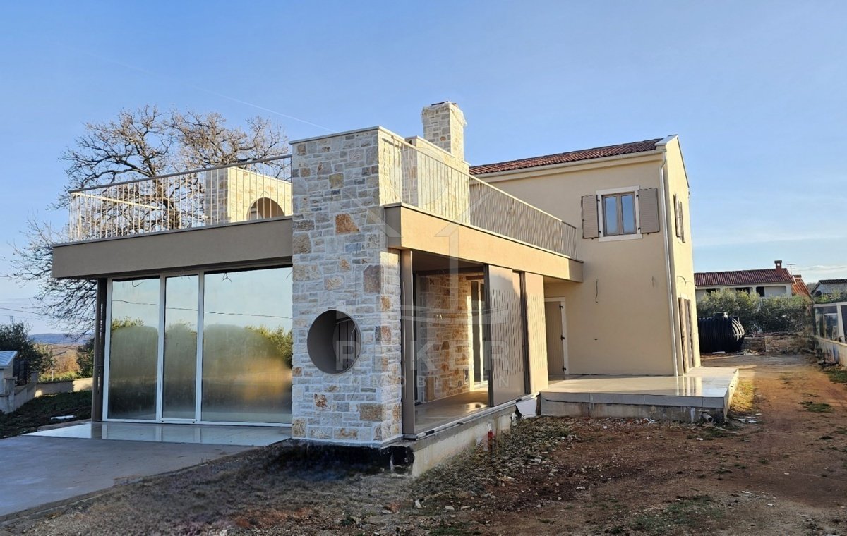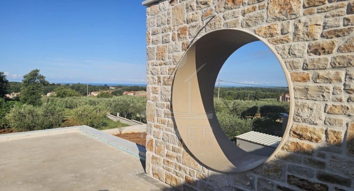 Rund 13 Kilometer von Poreč entfernt liegt diese moderne Villa in Vižinada … einer ruhigen Ecke Istriens, wo kaum Nachbarn stören. Die Umgebung ist angenehm still, die Aussicht spektakulär: Sie blicken unverbaubar aufs Meer und weit ins grüne