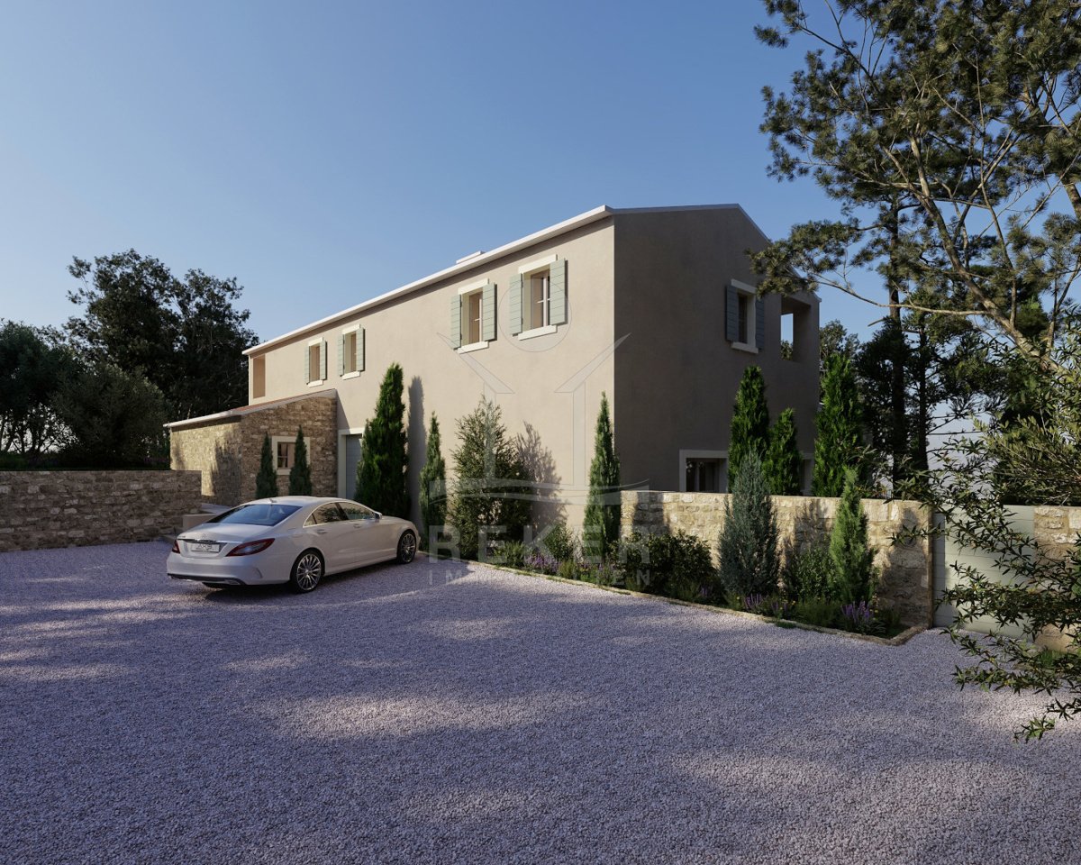 In der sanften Hügellandschaft bei Novigrad steht diese moderne Villa, die istrische Tradition und modernes Design harmonisch verbindet. Die Lage bietet Ruhe und Nähe zur Natur, gleichzeitig erreichen Sie Meer und Stadt in rund zehn Minuten mit dem Auto. Einkaufsmöglichkeiten, Restaurants, Schule, Kindergarten und medizinische Versorgung sind bequem erreichbar. Gesicherte Parkplätze befinden sich direkt auf dem Grundstück.