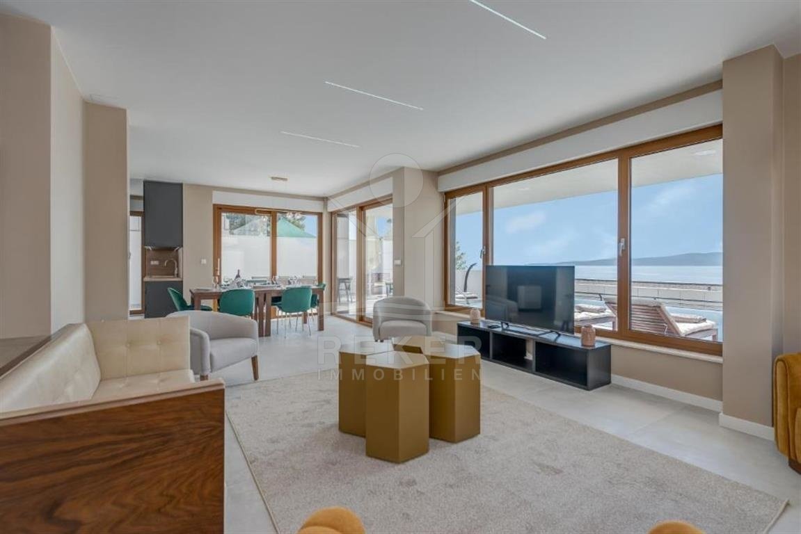 Die lange Liste an Highlights beginnt mit dem Pool mit Überlaufpool, wird mit der eigenen Wellnessoase inklusive Sauna, Jacuzzi und Fitnessbereich forgesetzt und kulminiert schließlich im unbezahlbaren Meerblick.