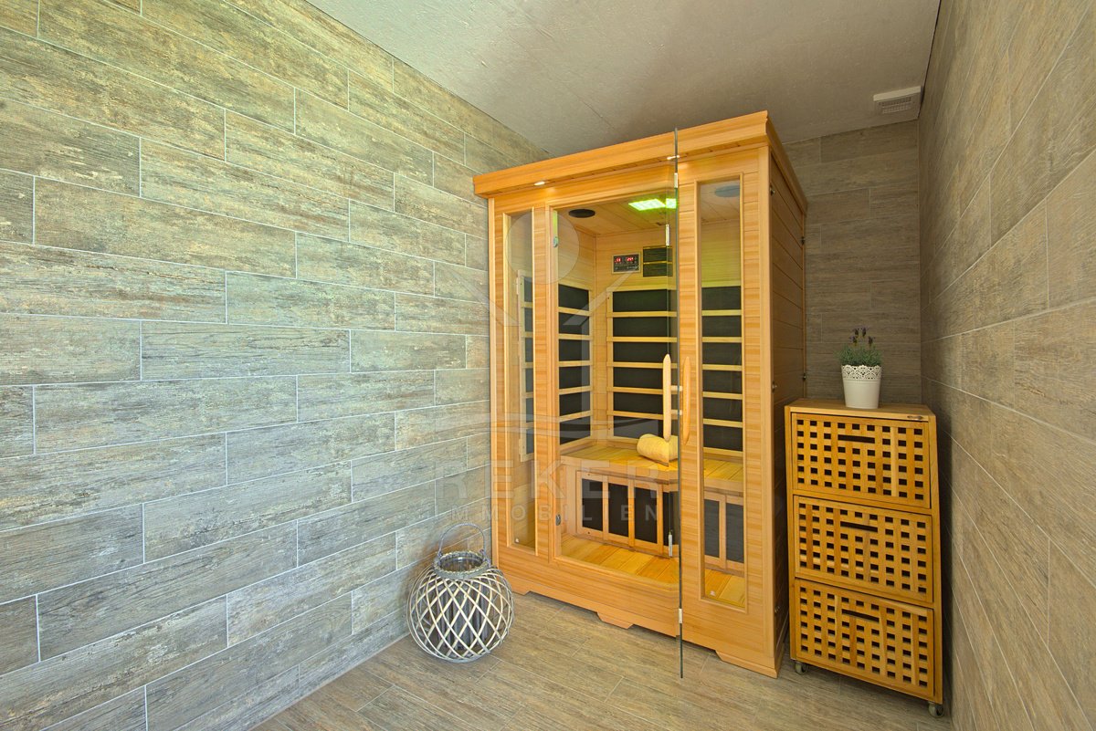Diese beginnt mit dem beheizbaren Pool, setzt sich über den wunderschönen Meerblick fort und kulminiert schließlich im Wellnessbereich mit Sauna und Whirlpool.